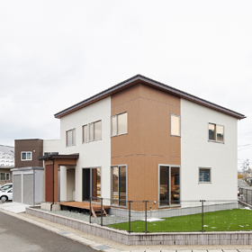 地元秋田の風景にとけ込む住まいを提案している。