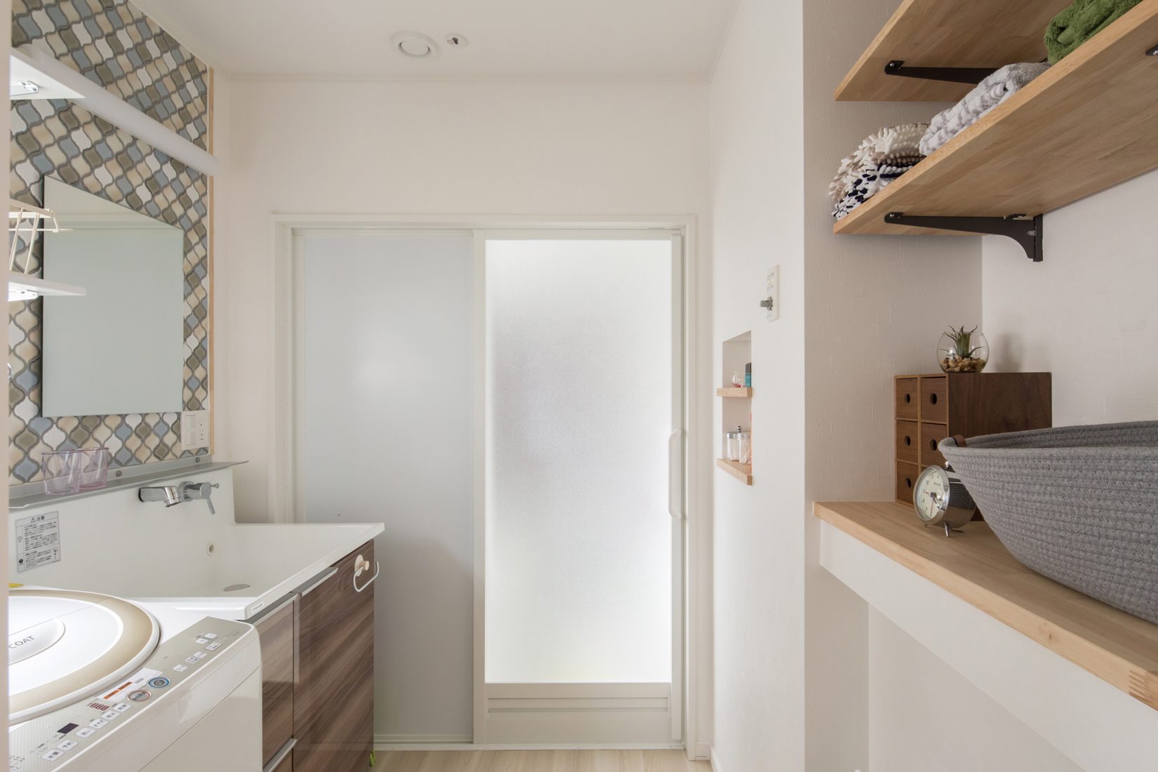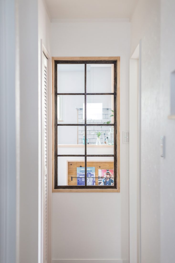夫妻が家づくりで大切にしたことは大きく二つだったという。一つは間取り。子どもたちが姉妹ということもあって、「一緒にお料理やお菓子づくりができるように(Aさん)」とキッチンは6帖という広さに。さらに空間をできるだけ広く感じられるようにと、廊下に対しても室内窓を設置するなどの工夫がされている。そして、もう一つがインテリア。Aさんの好きなクラッシュゲートの家具で統一され、内装は極力シンプルを心がけたという。アクセントになっているモザイクタイルや照明はもとよりスイッチにまでこだわって、物によっては施主支給したという。