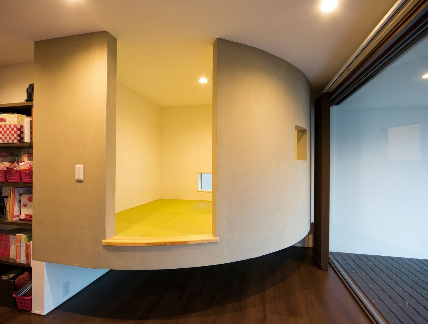 こうしてできあがった家は、抜群の開放感と、部屋のコーナーに浮くように配置された和室など趣向を凝らした洗練された印象の家になった。ドアでは仕切らず、アーチやカーブなどの壁の開口が柔らかく用途を区切り、家族の気配をいつも感じながら各自にくつろげる空間ができあがっている。「家族と家で過ごす時間がとても充実したものになりました」とGさん。