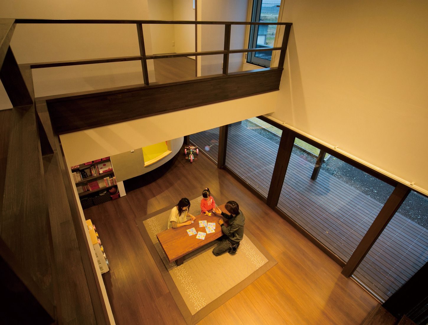 リビングの大きな吹き抜けが住む人に開放感をもたらす家