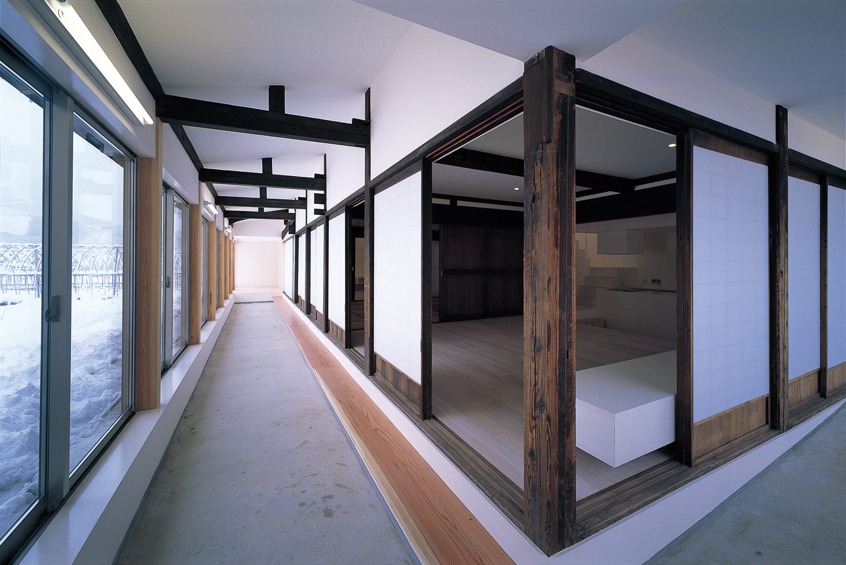 こうして始まったG邸のリノベーション。「ポイントは、2世帯の緩やかなつながりと、寒さ対策(納谷学さん)」だったそうだ。仏間という共有スペースを2世帯の間に置くことでお互いにとって心地良い距離感をつくり、リビング・ダイニング・キッチンや寝室・個室、トイレは別々にしながら、風呂は共有にした。「仏間を通して、ちょうどよく生活音が聞こえ、さらに、風呂が共有なので、毎日、自然と声をかけ合う。その距離感がちょうどよかった」とGさん。そして、寒さ対策としては土間空間を空気層にすることで暖かさを確保した。閉めると光が入ってこなかった外側の木製引き戸が窓に変わり、冬には土間と居住空間の間に設けられた障子を閉めると、光を入れながら冷気を遮って室内を暖かく保ってくれる。
