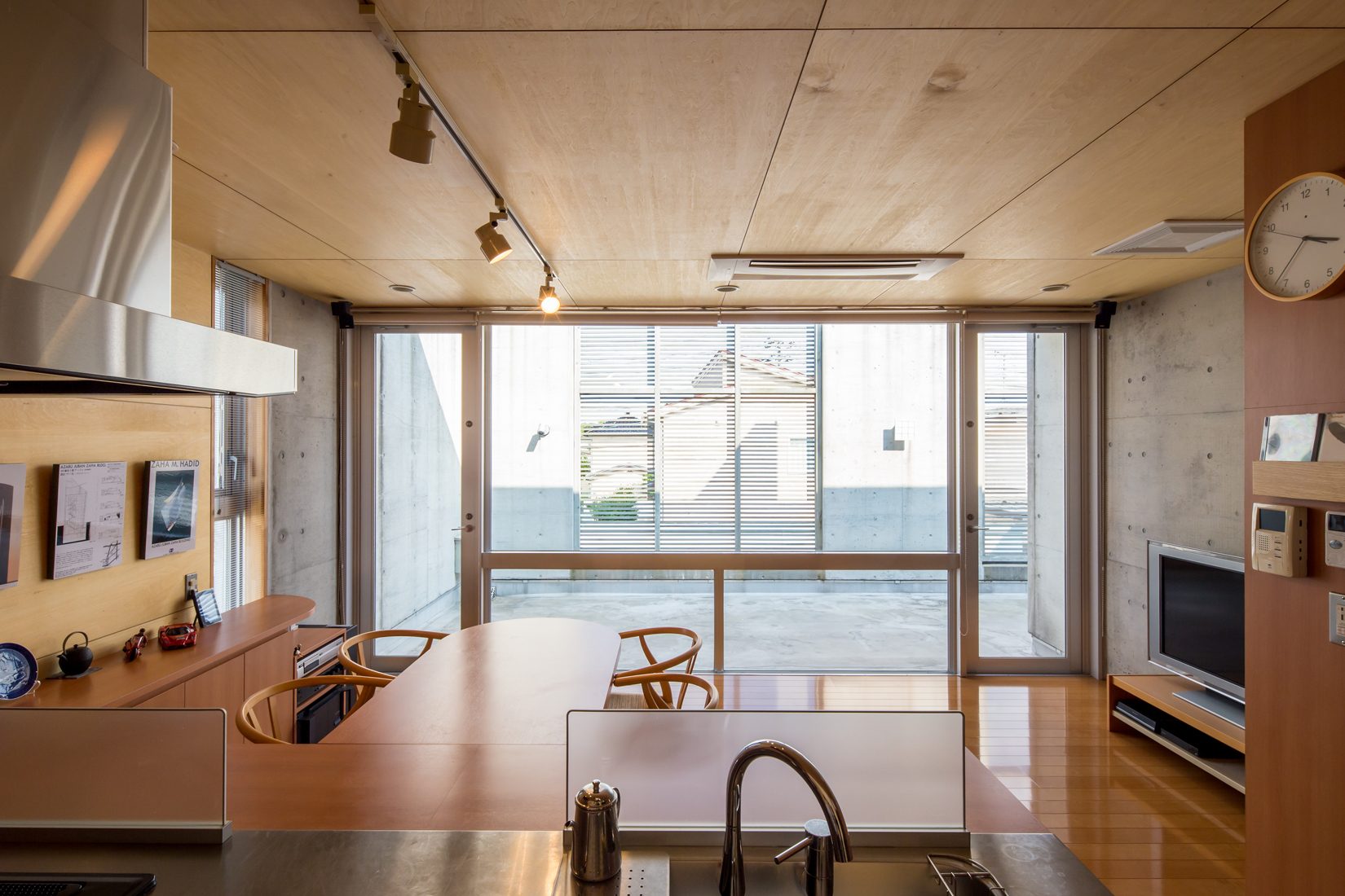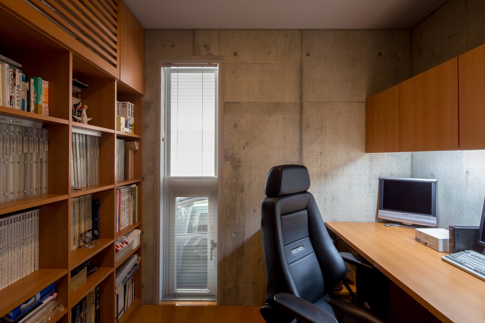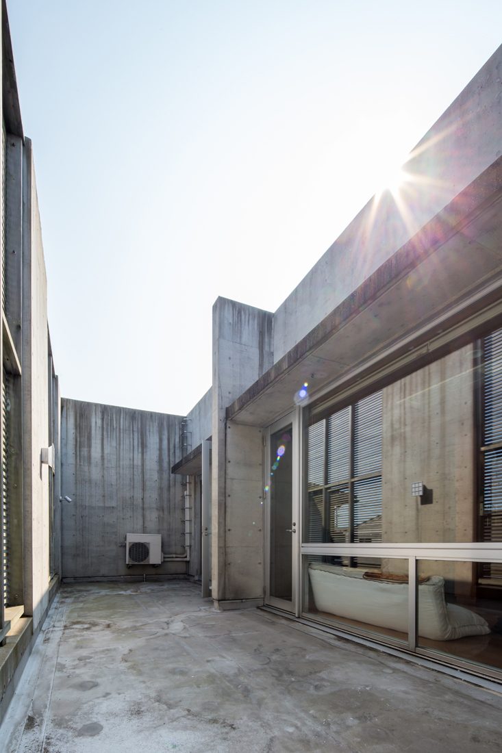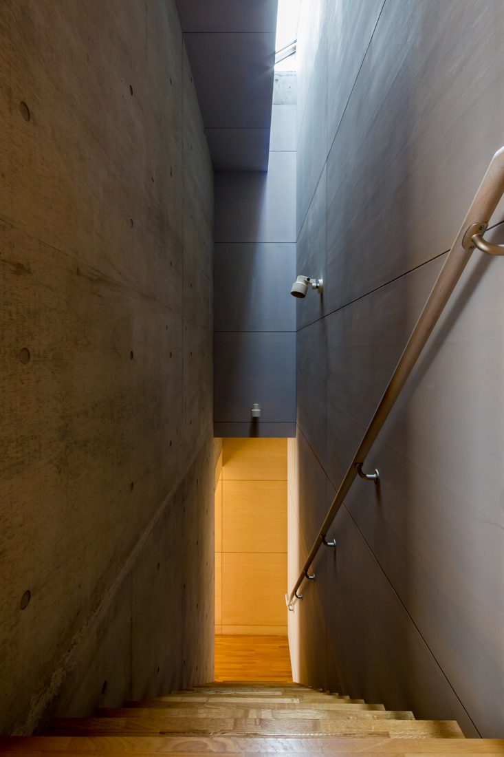 RC造にこだわっていたSさんだが、一度、RC造を諦めかけたことがあったという。「最初の建築予定地が区画整理の計画地で、RC造で建築できないということがあったんです。そのとき、加藤さんから『木造でも同じような住宅を建てることができるが』と提案されて、大袈裟ですけど、『試されている』と思いました」とSさん。折れずに、一から土地探しを続けたという。「RC造にはコンクリートでしか出し得ない質感や雰囲気があるが、予算も増えるし、木造でもできる規模の住宅をRC造でというのはよほどのマニア。本当に好きじゃないとできない」と加藤さんも当時を振り替える。