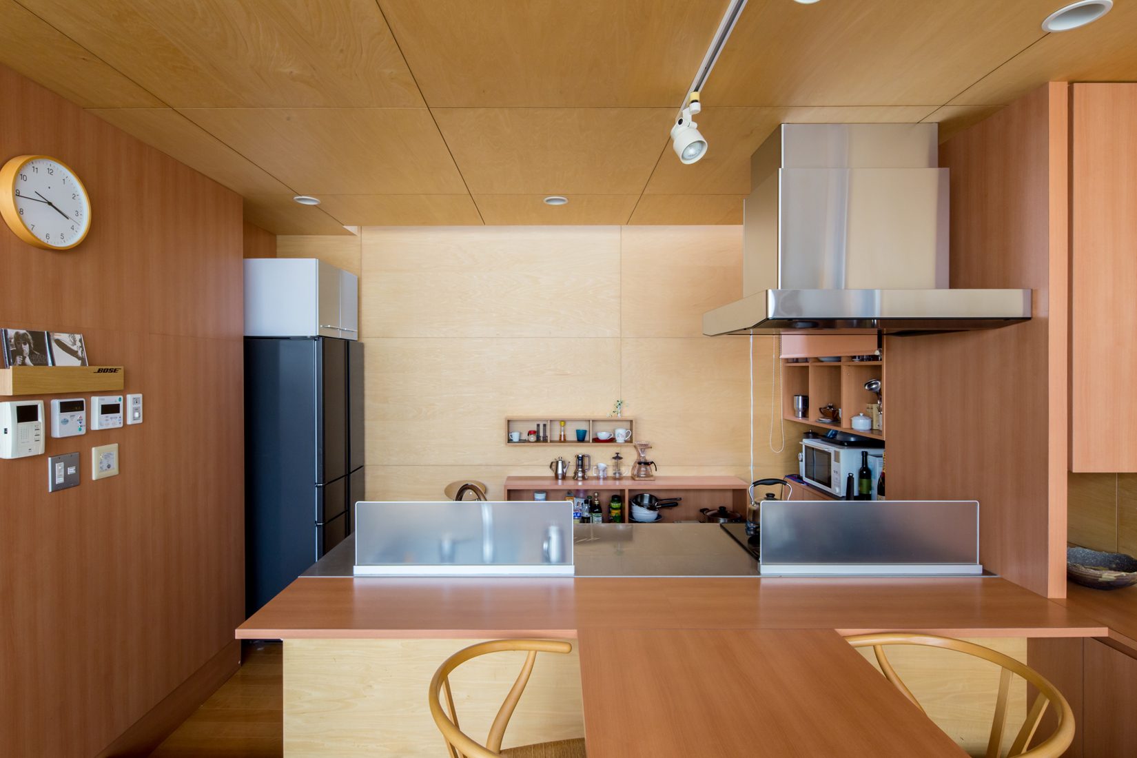 家づくりでは、予算的な制約の中で、どう希望を実現させていくかが難しくもあり、楽しかったという。希望は「外に閉じて内に開く家」。ファサードには窓一つ設けなかったことで、RC造が一層強調され、一方で室内は暖かみのある木材とコンクリートがバランスよく同居している。そして、2階リビングはRC造ならではの大開口で、2階面積のほぼ半分はテラスだ。こうしたデザインやインテリア、間取りもSさんの希望だったそうだ。「素人の自分が、どこまで口を出していいものかとも思いましたが、加藤さんが『言いたいことは全部言ってくれ』と言ってくれて、建築家と一緒に考えながら家を建てている実感がありました」とSさん。一緒に悩んで、一緒に汗水流して建てたという実感があるからこそ、建築から10年が経った今も、毎日、家に帰るのが楽しみだそうだ。
