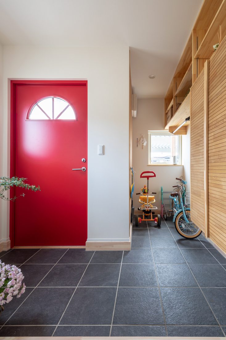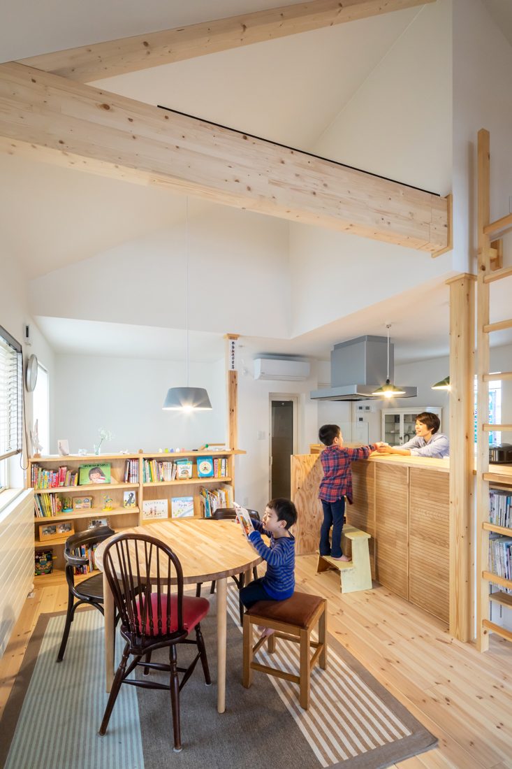 もともと北欧のデザインが好きだったという妻のEさん。Eさんが独身時代からずっと使ってきた古道具の医療棚と、本が好きだというKさん一家らしくバージニア・リー・バートン作の絵本『ちいさいおうち』の2つが家づくりのイメージの端緒となった。Eさんは「子どもたちが毎日帰ってくると家じゅうを走り回り、ブランコに乗り、はしごを登ったり降りたりと楽しそうに過ごしている姿を見ると、家を建ててよかったなぁと思います」としみじみした表情を浮かべた。