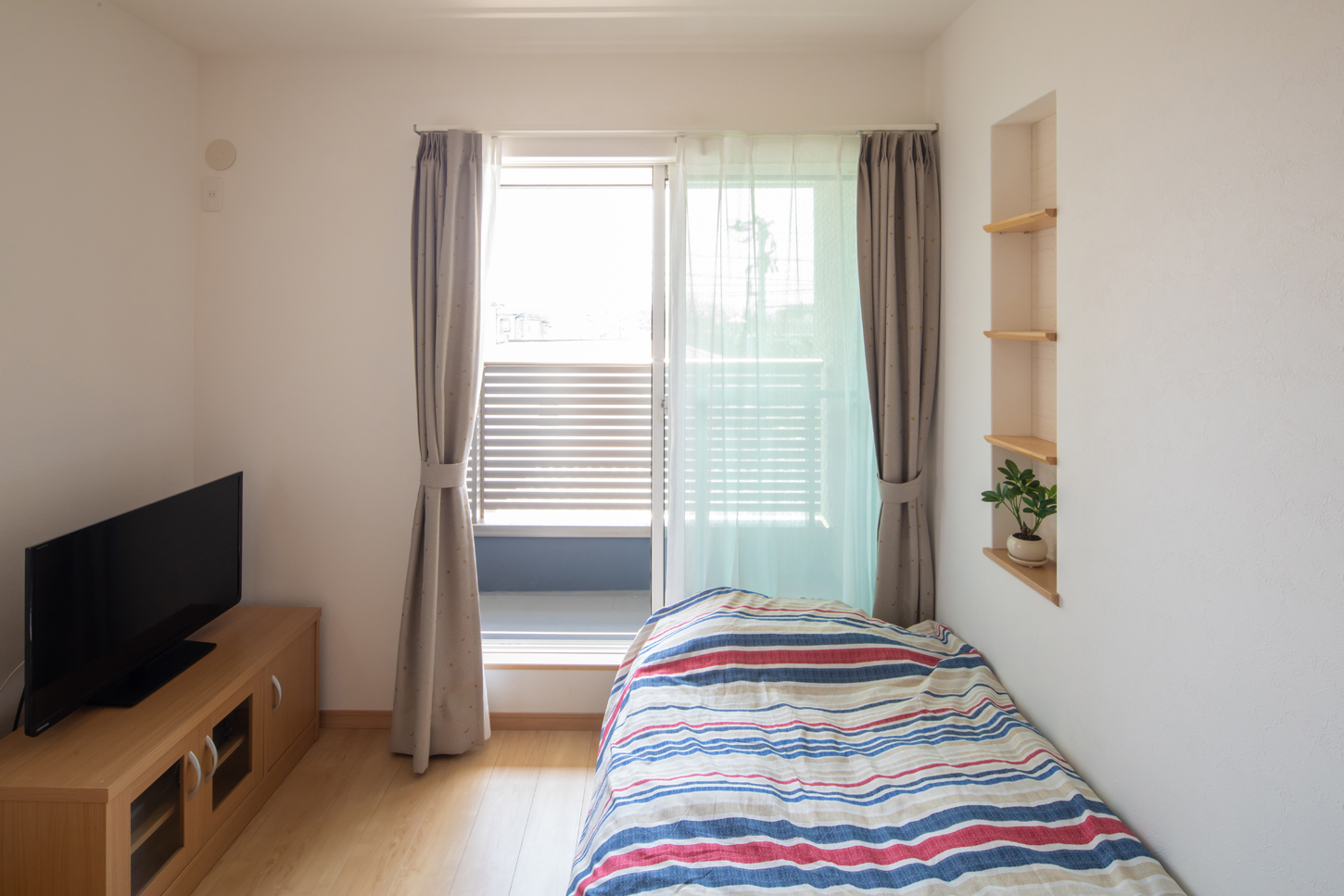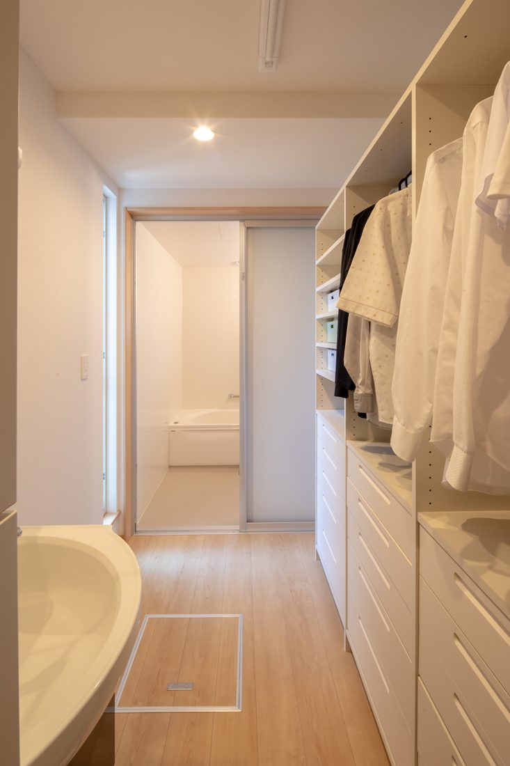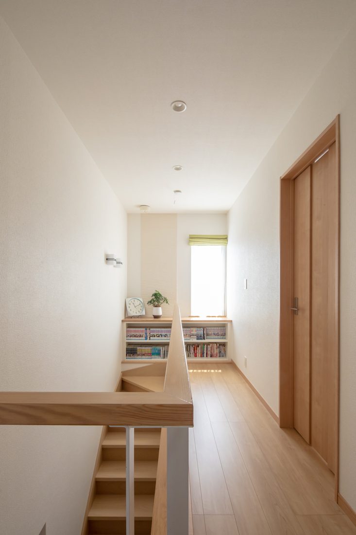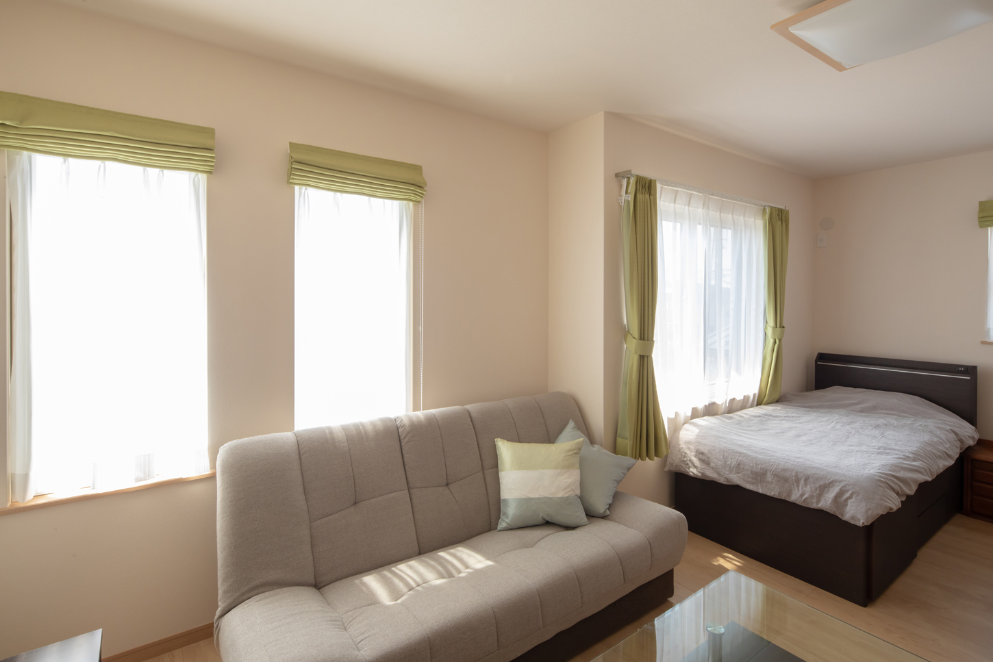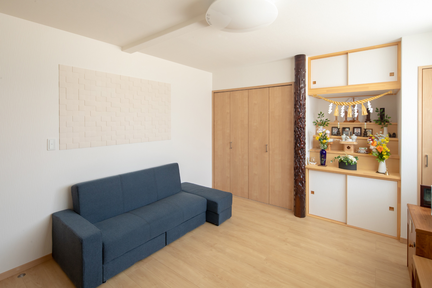 家づくりでは間取りと収納を重視。「石井さんの建てる家だったら高性能、ZEHは当たり前だと思っていたので、寒くない、暑くないなんてことは考えることもなく、とにかく暮らし方だけでしたね」とHさん。家族が多いこともあって、リビングは広めに、同居しても気楽なようにとKさんの部屋には水回りを完備、貸家では子どもたちに個室がなかったそうで、それぞれに十分な個室を。さらに、共同で施主になった長男のSさんの部屋には、将来結婚しても同居できるようにとリビングスペースも設えた。そして、「元々の家には収納がなくて不便だった(Yさん)」ことからと十分な収納を備え、「家具もできるだけ置きたくない」と造作した。