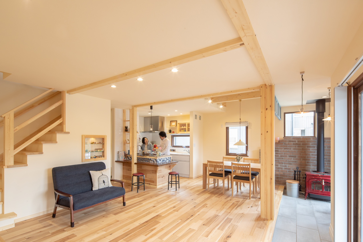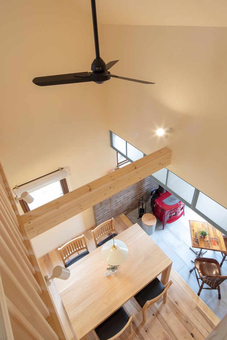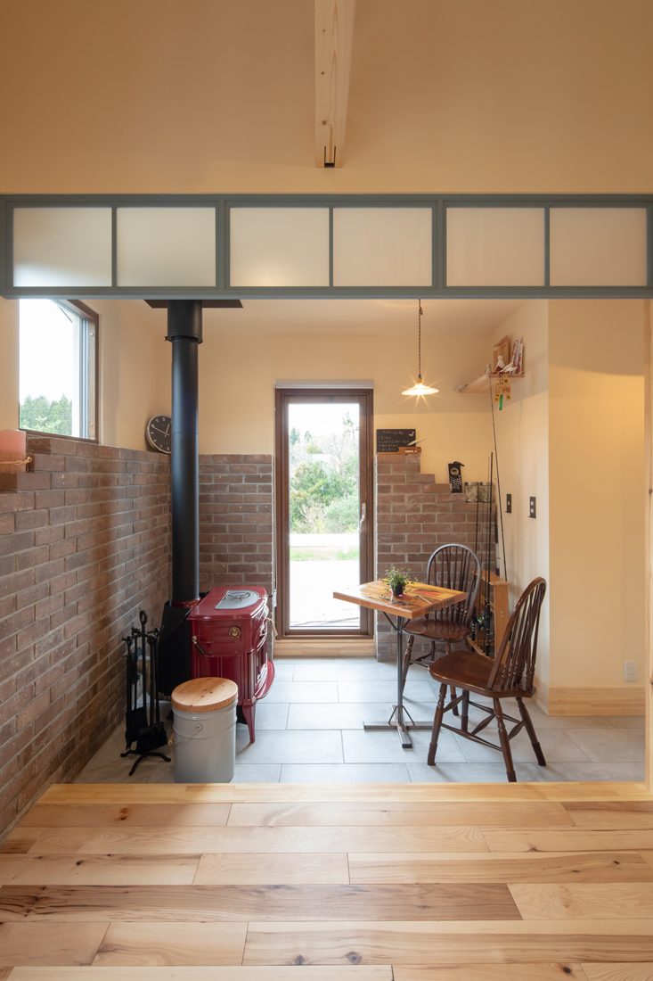 「家づくりでは、アンサーのモデルハウスをいろいろと参考にしました」とMさん。『平屋暮らしが叶う自然素材の家』の間取りをベースに、『土間のある木の家』から土間と薪ストーブを、『森休みの家』からカラーコーディネートを、自分たちの希望に沿って「いいとこ取り(Mさん)」していったそうだ。