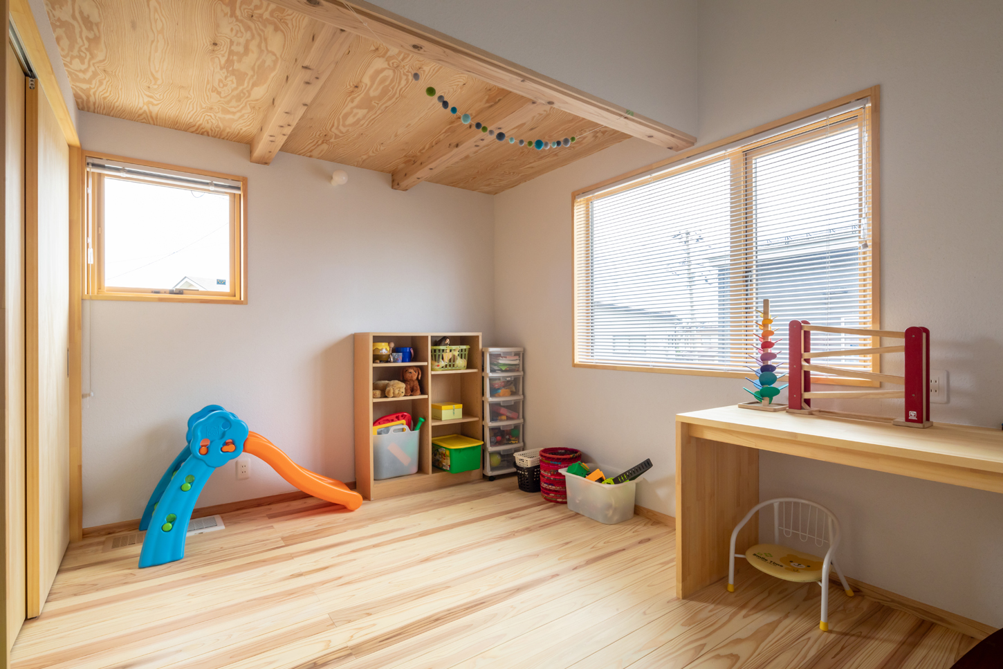 「カモやカワウが来たり、キジがやってきたりとさまざまな動物がやってくるのを眺めるのが、動物好きの私たち一家にはとても楽しくて」とKさん。以前から飼っていたハムスターとザリガニに加え、新築してから新しい家族として2羽の文鳥を迎えている。「庭づくりにも興味が湧いてきたりして、新しいことに挑戦したくなりましたね。ワンルームのLDKで子どもたちがのびのびと走り回っている様子を見ていると、家を建ててよかったなぁと思います」とUさんも目を細めた。