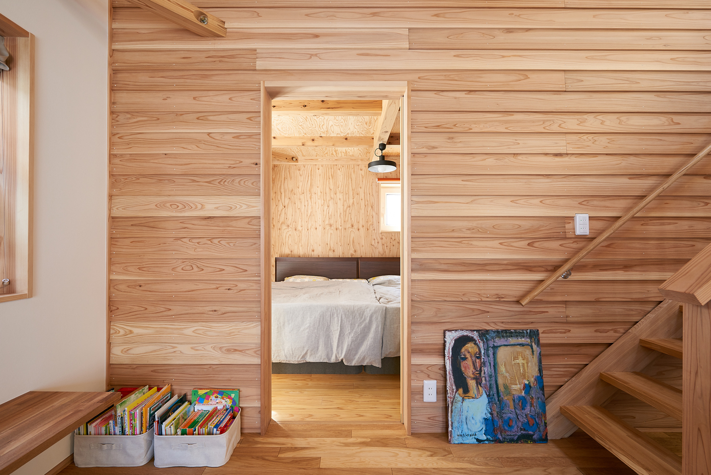 1階リビングが主な家族の居室で、そこから直接つながった寝室はぐっとプライベートな空間として明確に役割を分けている。「衣食住、収納まですべてが1階で完結する間取りにしてもらっています」と妻のSさん。特にウォークインクローゼットをウォークスルーにしたことが功を奏し、家事負担はぐっと軽減され、2歳になる長女との時間を楽しめる余裕が生まれる新居となったそうだ。