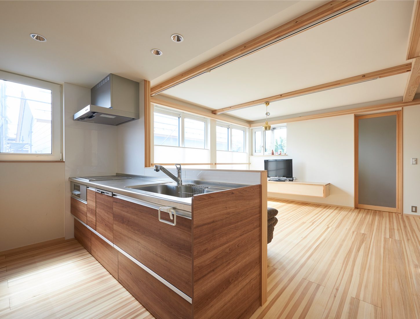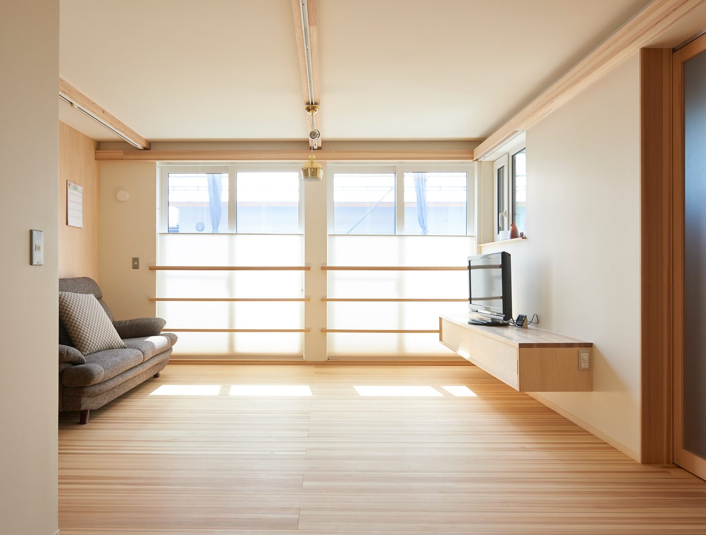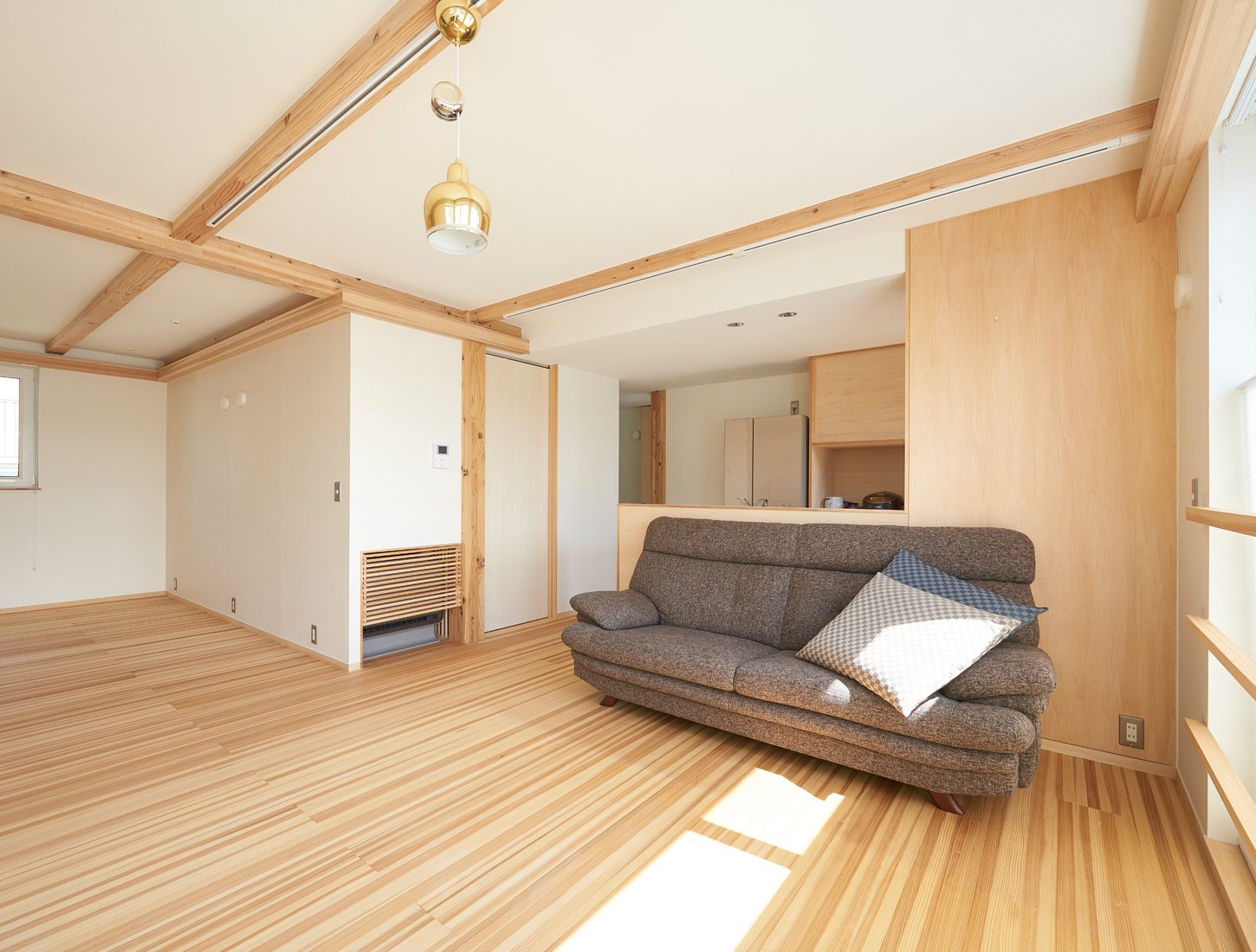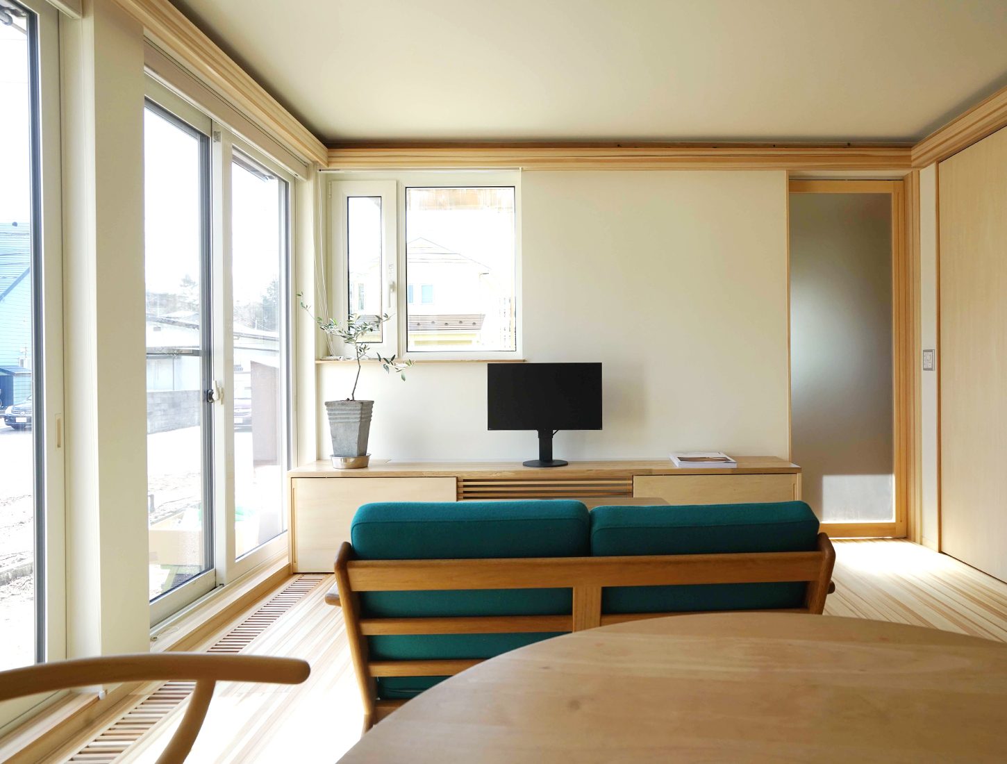 例えばこのリビングは壁をつければもう一つ洋室ができるようになっている。壁伝いの梁のようなものは意匠であると同時に、電気の配線を目立たずに渡せる工夫だ。ヨシのいえの代表の山田さんは「ライフスタイルは10年ごとに変化すると言われます。それに柔軟に対応するため、スケルトン(構造躯体)とインフィル(内装や設備)を分けることで住み替えを容易にすること、またエネルギー消費量ができるだけ少なくてすむパッシブな家づくりによって、北国・秋田でも、省エネルギーで快適に暮らせる温熱環境を確保することなどで、『70年間住まいの価値を持続する住まい』を提案しています」と話す。