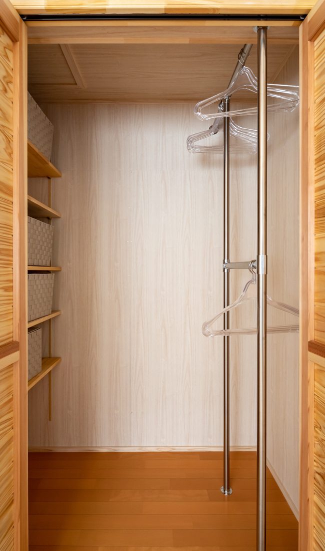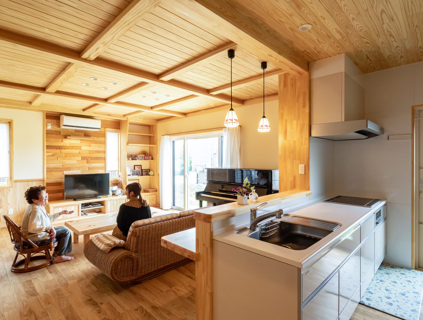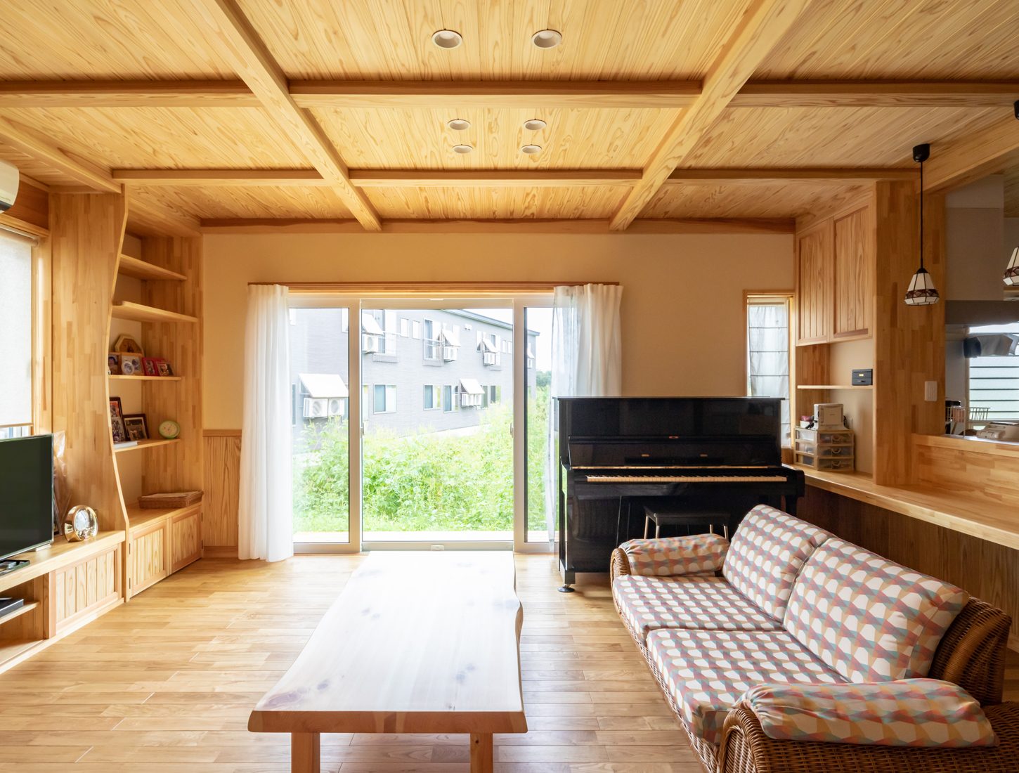 Mさんがアベ建の住宅を初めて見て「いいなぁ」と思ったのは12年も前に遡る。「当時住んでいた集合住宅の近くに白壁で木造のいい家が建って、『どこが建てたんだろう、いい家だなぁ』と思っていました。妻は内覧会にも足を運んで、『木をふんだんに使ったすてきな家だった』と」と振り返る。3人の子どもたちがそれぞれ独立した後、高齢になった母親とMさん夫妻で同居することになったとき、まっ先に思い出したのもアベ建の家だった。「家族のなかで私だけが過敏症で。接着剤やゴムの匂いで頭が痛くなるんです。だからこそ木を中心に自然素材を使った住宅を建てているアベ建さんにお願いしようと思いました」とMさん。