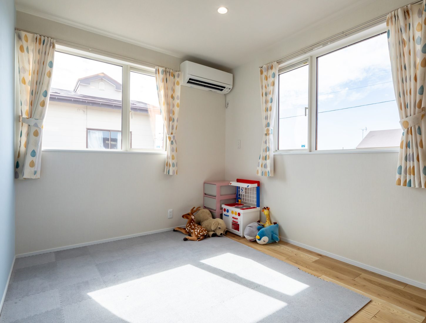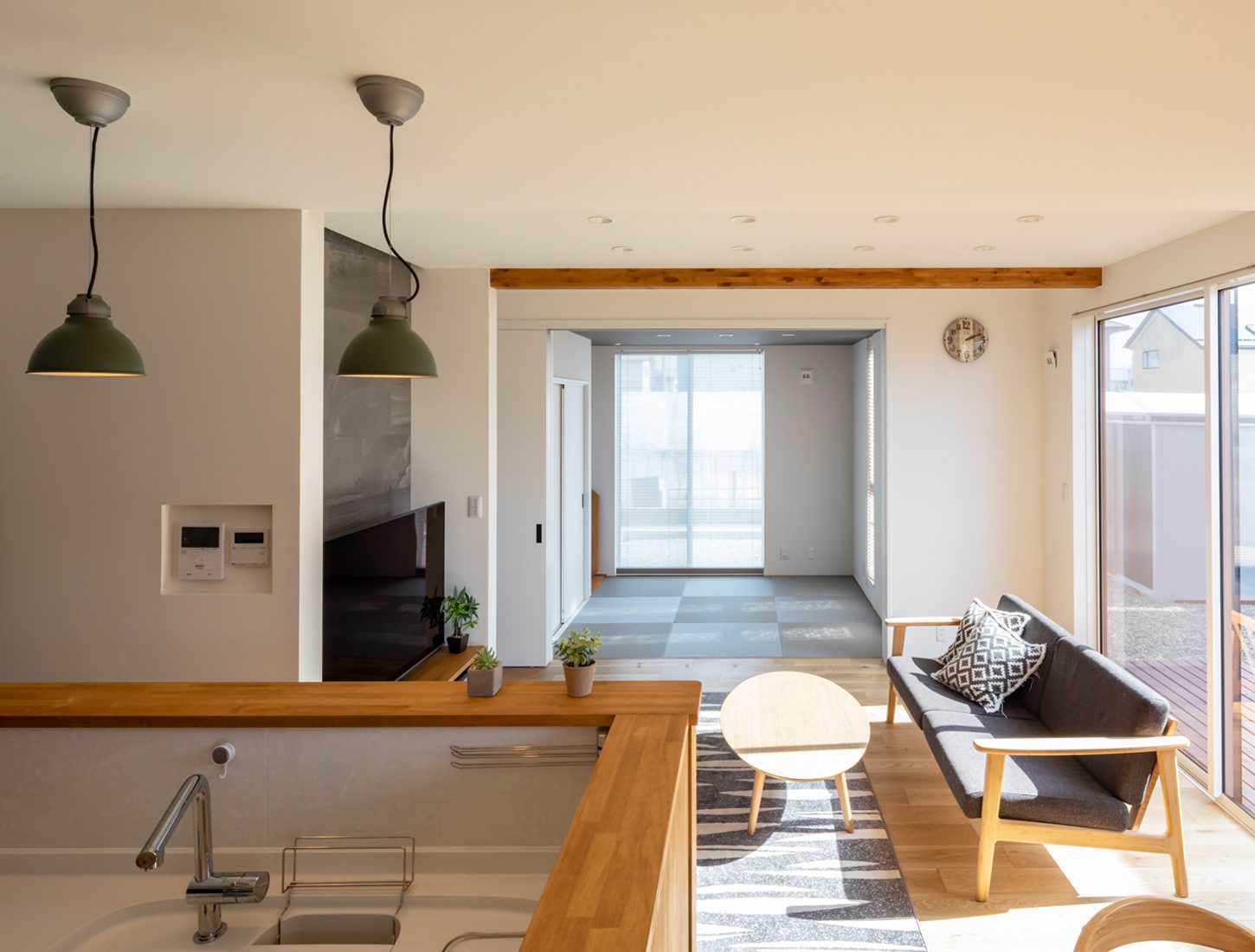家族が増えたのを機に家づくりを本格的にスタートしたというSさん夫妻。若い世代のニーズにもマッチしたデザイン性から北久ホームでの家づくりを決意したという。「モデルハウスがとても気に入りました。L字型のLDKやマガジンラックが一体化した造作のキッチンなど、我が家でも採用した部分がたくさんあります」とSさん。Yさんも「大きな窓は寒さが心配と聞いていましたが、ひと冬越してみてとても暖かくて。性能とデザイン性と両方を叶えてくれるビルダーさんと家づくりができて本当によかったと思います」と笑顔で語った。