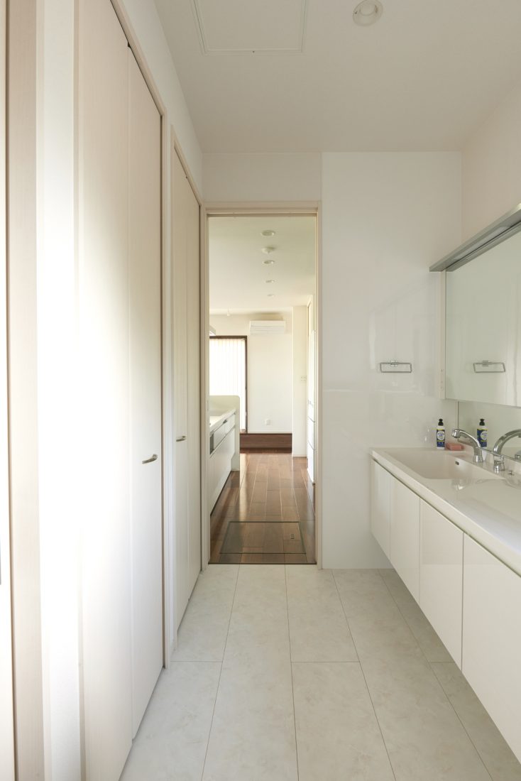 新築前はマンションで暮らしていたというIさん家族。「マンションは玄関が狭くて圧迫感があったので、開放的な玄関にしたかった」という妻のAさん。一方、「マンションは窓からの眺めが開放的で(Iさん)」と、空間的な広さとともに、視線が抜ける開放的な家づくりがテーマだったそうだ。