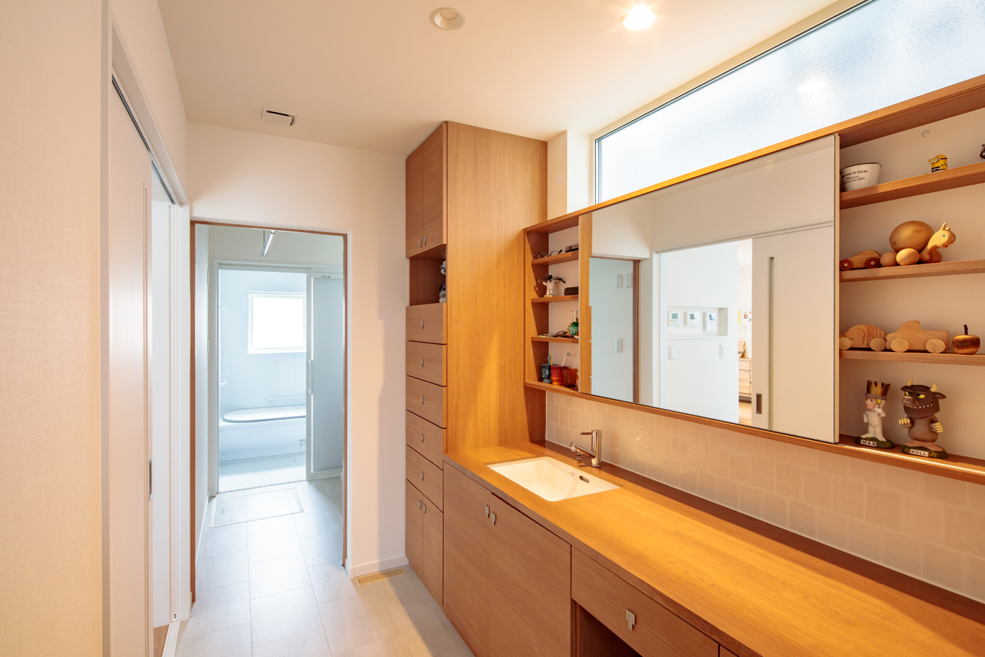 ●設計 S・デザインファクトリー株式会社 ●施工 三光不動産株式会社 ●竣工 2018/5 ●構造・工法 木造軸組工法 ●規模 2階建 ●敷地面積 213.55㎡(64.59坪) ●床面積(総)120.48㎡(36.44坪) 1階 65.00㎡(19.66坪) 2階 55.48㎡(16.78坪)