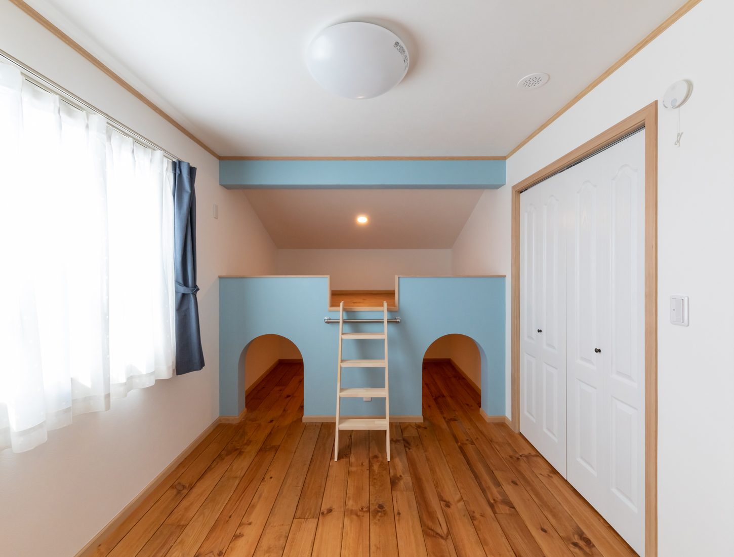 Sさんは2階の洋室に設えられたロフトベッドがお気に入り。「インデュアホーム秋田のモデルハウスに似たものがあったので、我が家にもほしいと茂木さんにお願いしました。将来子どもが生まれたらきっと楽しく過ごせる自分の部屋になると思うんです。こうした素敵な提案をしてくださるので、茂木さんにお願いしてよかったと思いますね」とSさんはにこやかに語った。