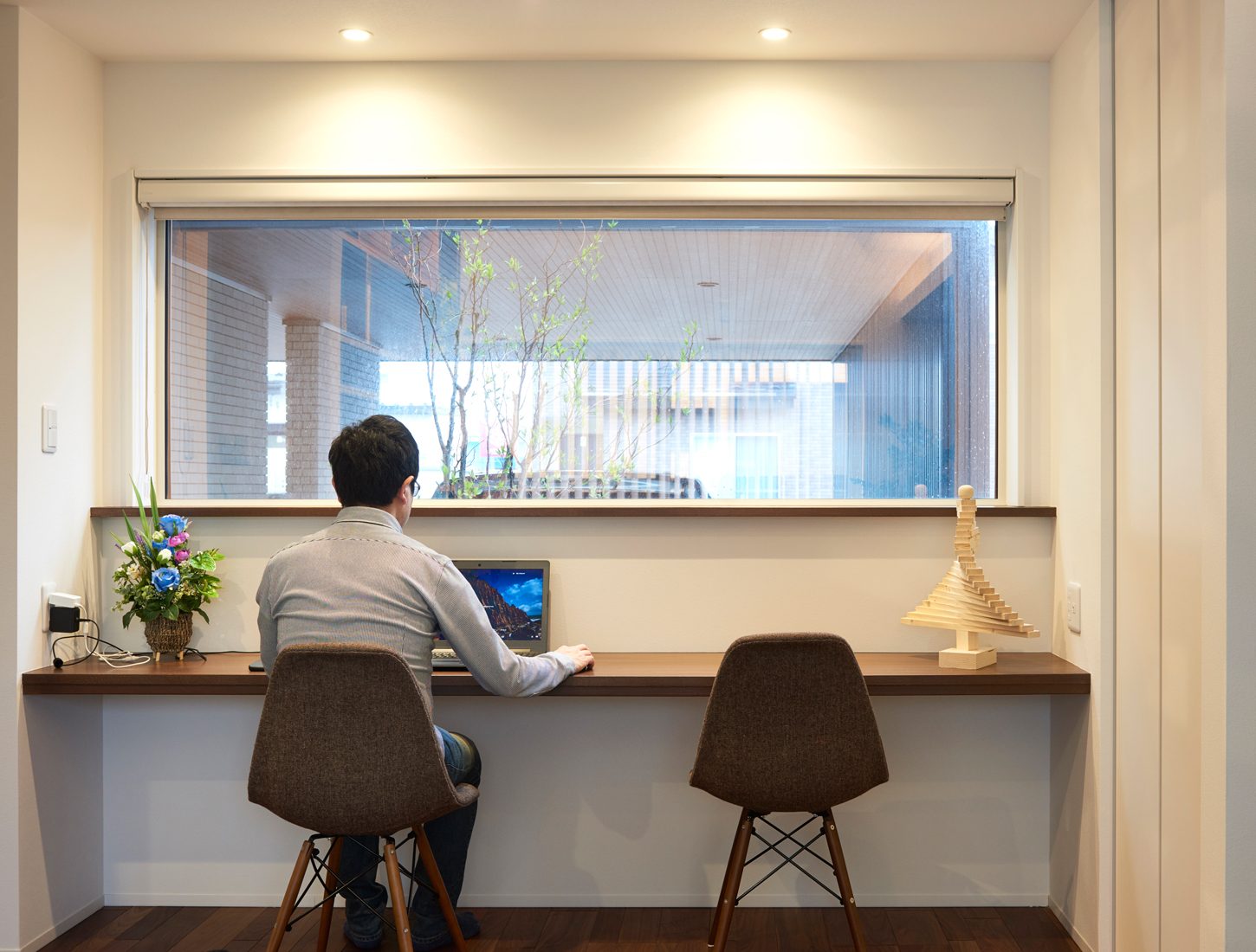 映画鑑賞や楽器の演奏など、多趣味なIさん夫妻はこの家での暮らしを満喫している。「妻の希望で1階には電子ピアノを置き、洋室の一つはオーディオルームにする予定です。ガレージのある家に憧れていたので、ゆくゆくは木工の機材を導入してDIYも楽しみたい」とIさん。妻のKさんは「この家に住みはじめてから、夫婦で晩酌をするひとときがいっそう楽しみになりました。家の中で景色が変わるので『今日はどこで飲もう?』と考えるのも楽しい」と顔をほころばせた。