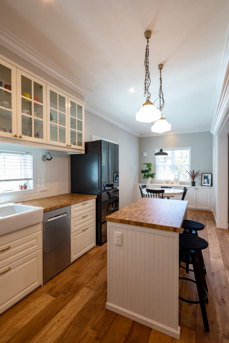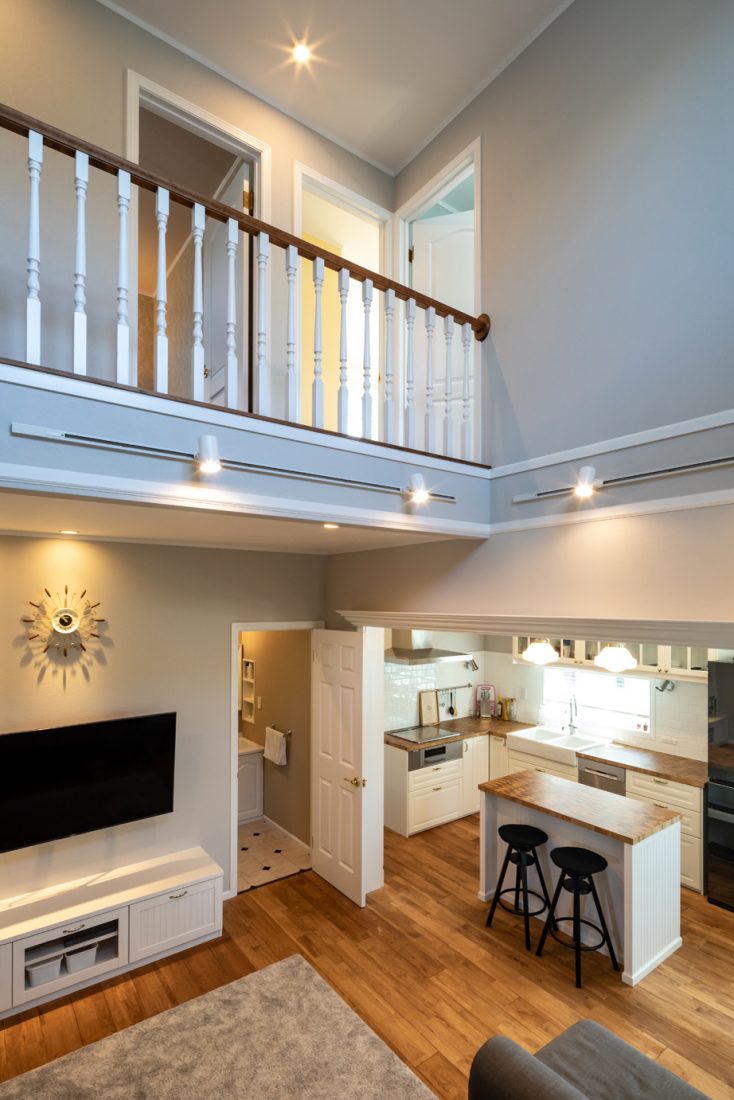 海外ドラマに出てくるような内装を希望していたYさん夫妻。「キッチンは白を基調にした壁がないアイランド型で、独立の作業スペースをつくりました。忙しい朝は朝食をここで済ませることができるし、子どもと一緒に料理をすることができるので、とても役立っています。家づくりを進めていくなかで、茂木さんからできないと言われたことがありませんでした。私たちの好きなものばかりを詰め込んだ家を作っていただき、とても満足しています。家に帰ってくるのが楽しみになりました」とYさん。憧れを実現させた住まいでのこれからの暮らしに思いを馳せている。