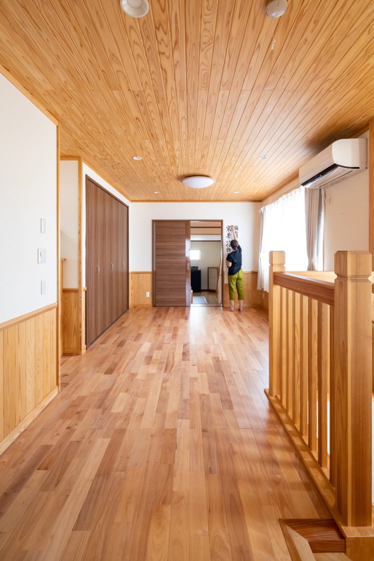 2階の多目的ホールは習字が趣味だというRさんたっての希望で設置した。「3人の孫と一緒に習字の練習がしたくて。散らかしっぱなしにしてもいい場所に作ってほしいとお願いしました」とRさん。建てるときは妻任せだったというMさんも「家を建て替えてからこの家をきれいに維持しようと、こまめに掃除をするようになりました」ときれい好きな性格に。お気に入りのこの家で、夫婦2人で穏やかに暮らしていくことが目標だ。