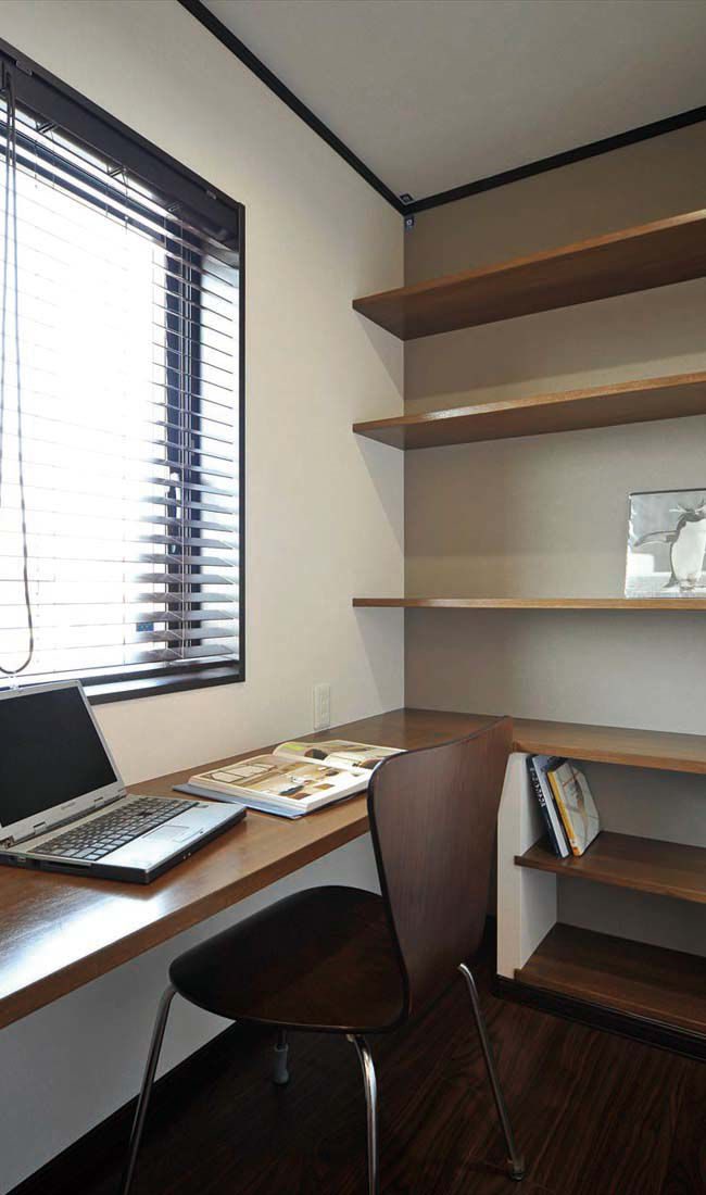 リビング階段を上がると、今度は1階とは対照的に、子ども部屋が二つ、寝室、1.5坪とミニマムながらIさんの書斎という、プライベートを重視した間取り。「書斎をつけたので、2階のトイレを諦めました。ご覧のとおり広くはないですが、自宅に仕事を持ち帰ることも多いので、書斎はつけてよかったと思います」とIさんは語る。