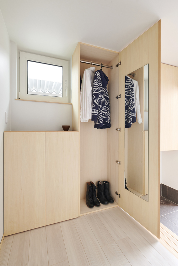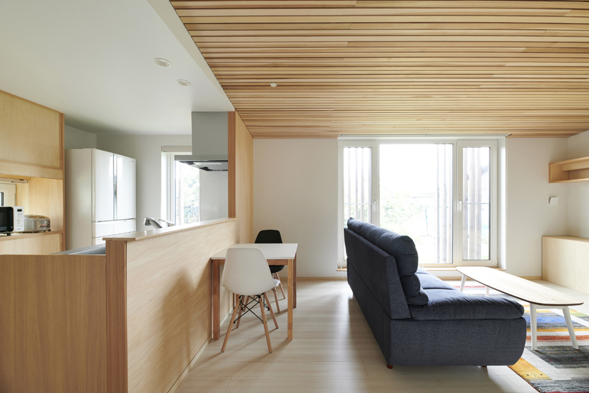 その上でH邸は、外壁やLDKの勾配天井に秋田県産の杉材をふんだんに使用した。Hさんは「外観や内装のデザインについては山田さんからのご提案にある程度お任せしました。予算との兼ね合いで、力を入れる部分と抑えてもいい部分を親身になって考えてくれたので安心して任せることができました」と話す。「とくにLDKの勾配天井は、スタイリッシュでありながらも空間が広く感じられるので、とても気に入っています。想像していた以上の家を建てることができました」とHさん。安心できる設備とオリジナリティーを感じるデザインという両方の希望を叶えた住まいで、穏やかな生活を送っている。