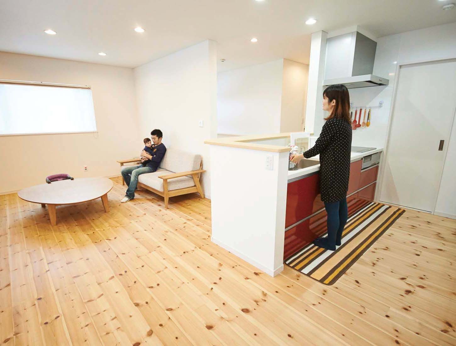 外からの視線が気にならないようにとリビングを2階にしたが、周囲からは「年をとったら2階に上がるなんて、毎日のことだから足腰大変だべ、大丈夫だか」と心配されたという。それに対するホワイトボックスの解答が明快かつユニークなものだった。将来2階に上がれなくなったときのために、1階のウォークインクローゼットにキッチン用の配管を済ませておくというのである。こうしておくことで、1階の主寝室と子ども部屋のあいだの壁を取り払うかんたんなリフォームで1階だけで生活が完結する家に早変わりというわけだ。将来、子世帯との同居などで必要になったときには、2世帯住宅として住むこともできる。「これも花田さんの提案です。家はずっと住むものだけど、先々のことは自分たちではなかなかイメージしきれない。想像もできなかった人生の先々まで見すえて、いろいろな工夫の提案をしてくださったので、本当に信頼できる人に巡り会えたと思いました(Kさん)」。