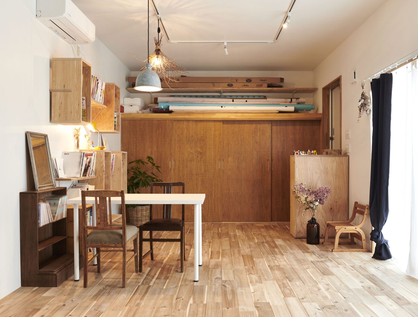 スタジオと前室はIさん夫妻が友人の助けも借りながらセルフペインティング。友人が代表を務めるあくび建築事務所に相談して本棚を取りつけるなど、住み始めてからも家づくりを楽しんでいる。「住みながら心地よさを積み上げていける。それが家づくりの楽しさでもあるんだなと実感しています」とNさん。