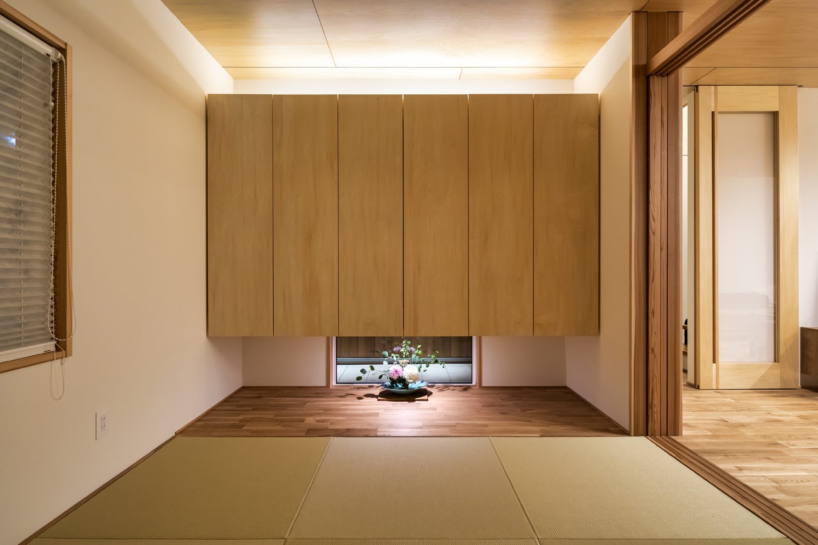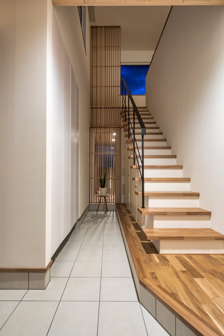 S_DESIGN FACTORYでは、外装や建具にできるだけ既製品を使わずに秋田杉など地元の材料や職人の技術を生かした住まいづくりを得意とするビルダー。E邸でも和室の襖や階段などに職人の技が光る。「カタログから選ぶだけではなくて、ゼロから作ってもらえるなんて知らなかったので、提案してもらってよかったと思っています。地元の材料を使うことで、無垢の木の温もりが感じられる家になったのもうれしくて」とEさん。