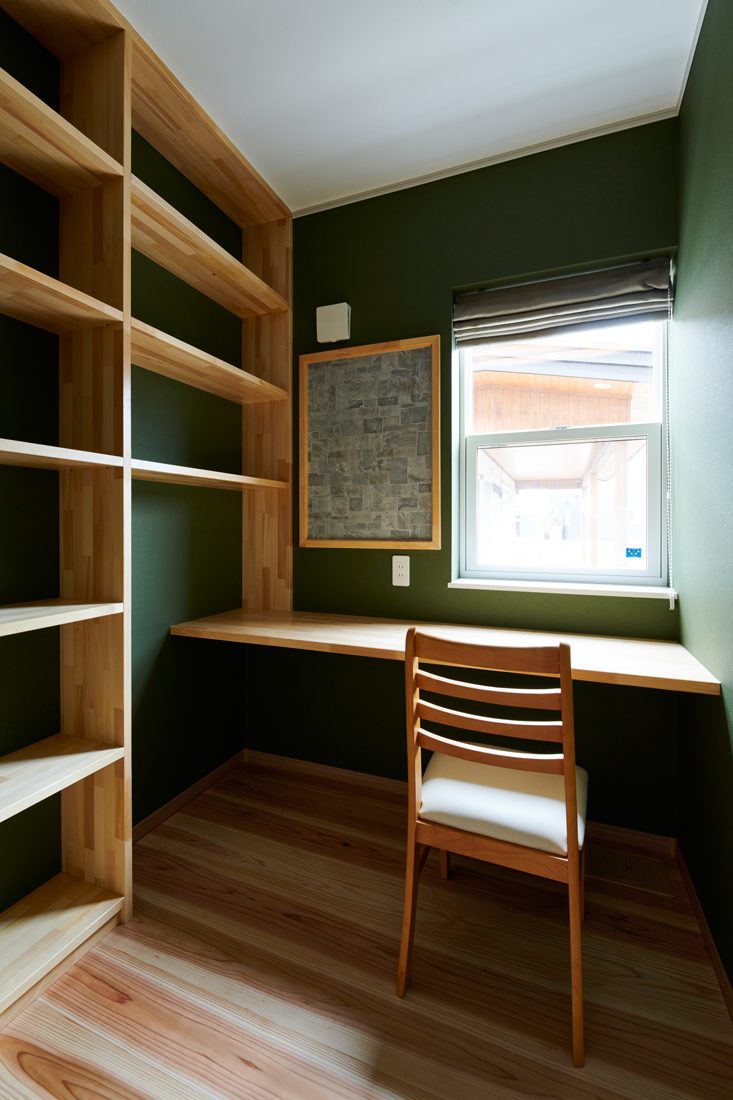 「扇建設さんは細かいところも丁寧でこちらの要望に寄り添ってくださったんです」とTさん。ウエスタンレッドシダーの玄関ドアや室内引き戸など、造作建具も多いのもTさんが気に入っているポイントだという。
