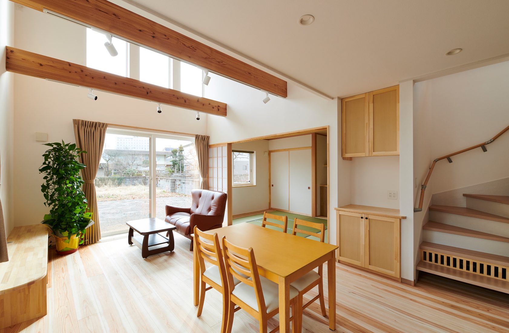 三連窓で、自然光や風も 上手に暮らしに取り込んだ住まい