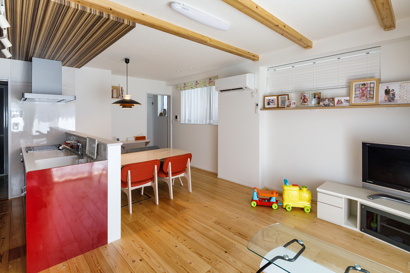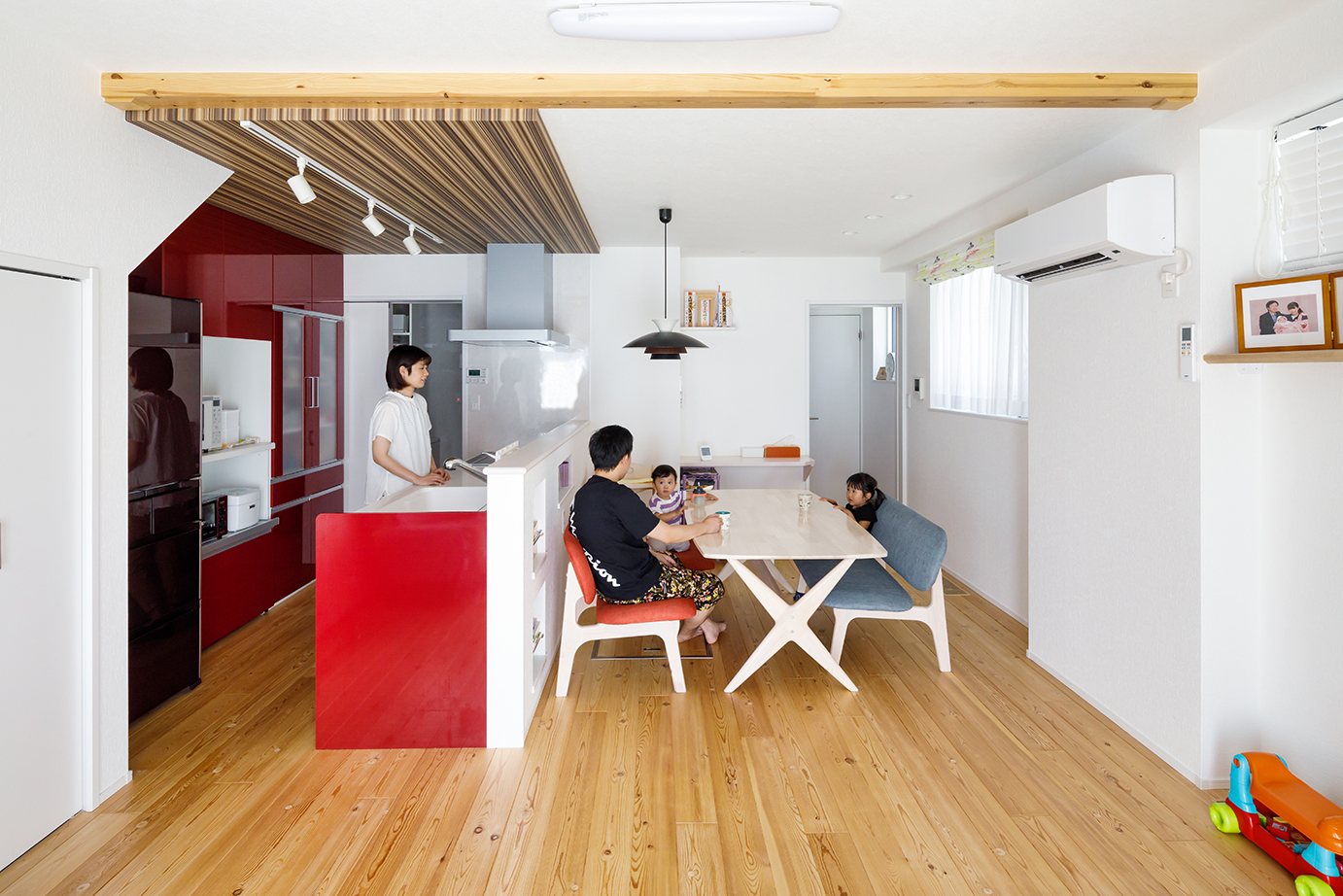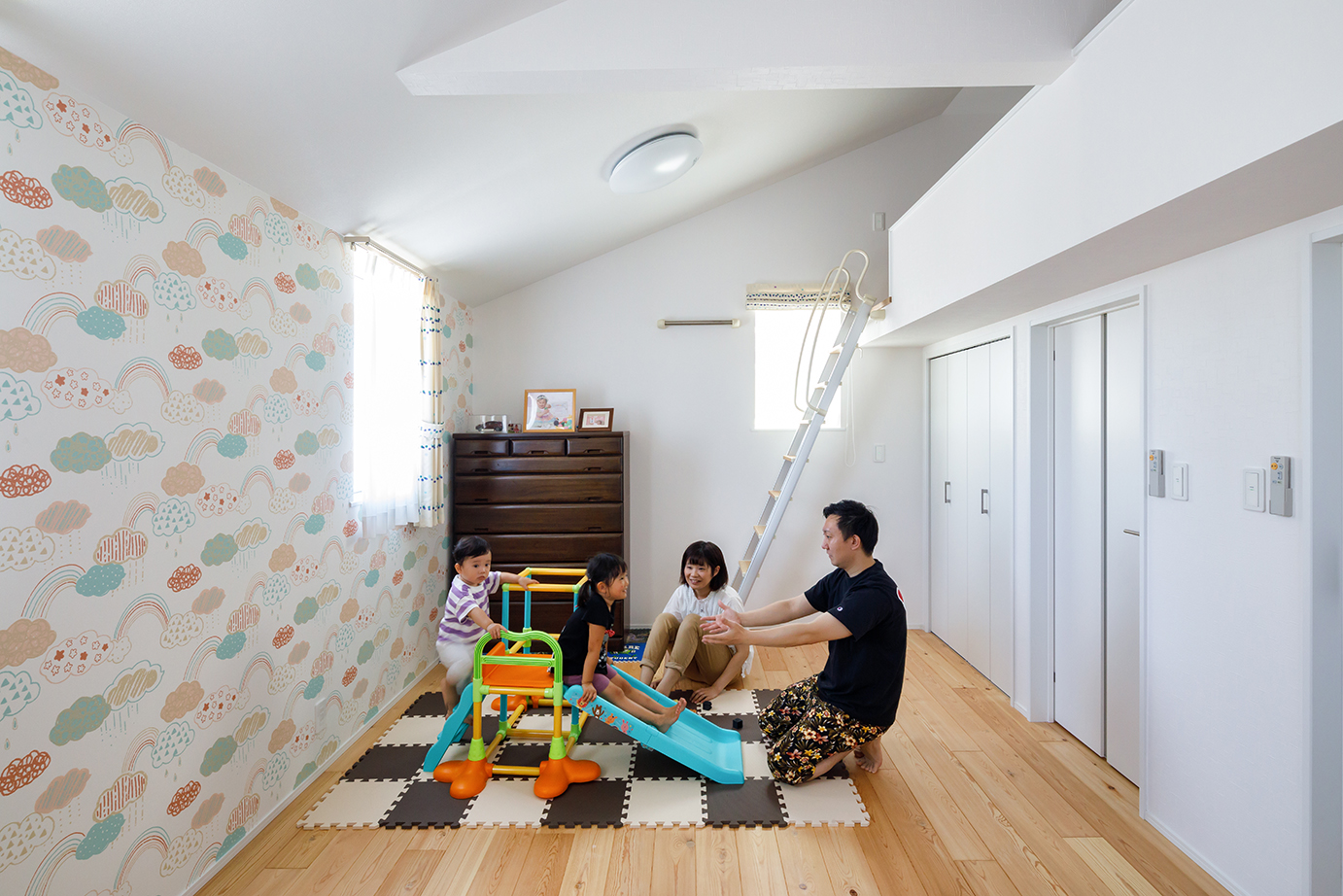 Iさんが家づくりを始めたのは、子どもたちの健やかな成長を願ってのことだった。子どもたちは二人ともアレルギー体質。特に長女は体が弱く、これまでに何度も夜間救急や入院を経験してきたという。「借家が古かったので、カビなどアレルギーに心配な要素を避けられることと、思い切り走り回れる家がほしいと思ったのが家づくりのきっかけです」とIさんは振り返る。