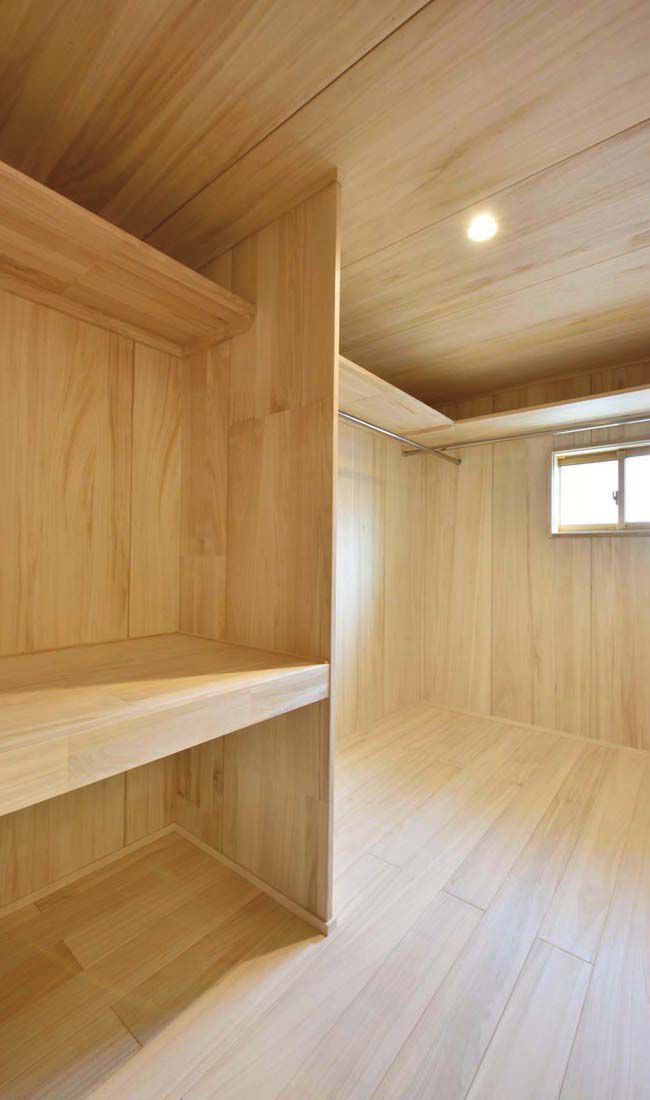 一口に無垢材といっても、実は樹種によって特性がある。例えば桐は昔からタンスにも使われるとおり、防虫、調湿性に優れているので収納部に適しているし、ヒバはシロアリや腐朽菌に強いため、土台に向く、といった具合だ。大建では、徹底して無垢材を使うだけでなく、木の特性を生かし、住宅の用途に応じて樹種を使い分けている。 Fさんも「木を熟知されている大建さんと一緒に家づくりができて、予想をはるかに超える良い家になりました」と仕上がり、住み心地ともに満足の様子。「初めは凹みやキズが気になっていましたが、そのままでも味であると思えばまったく気にならなくなりました。冬でもスリッパは履かず、裸足で過ごせています」と話す。