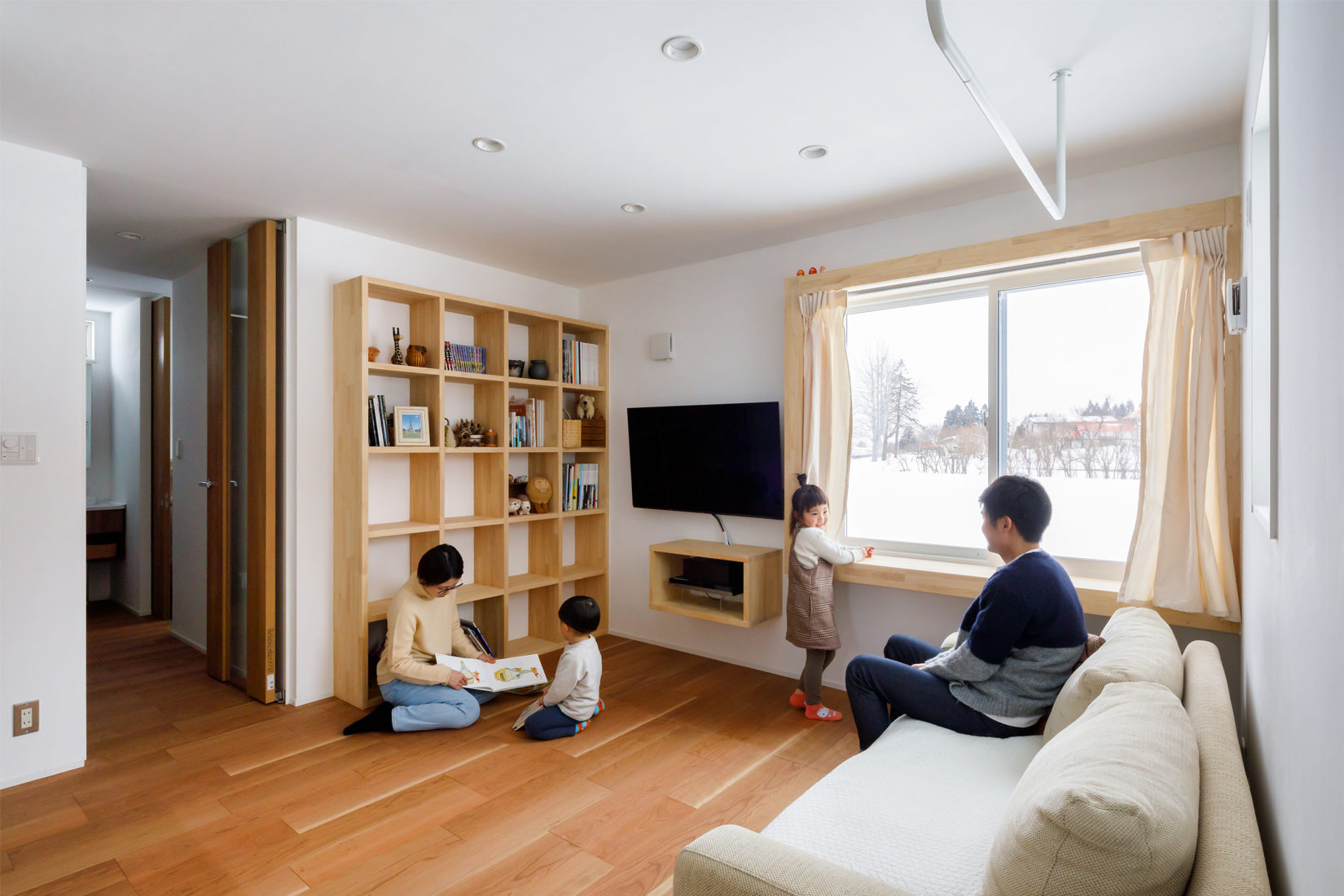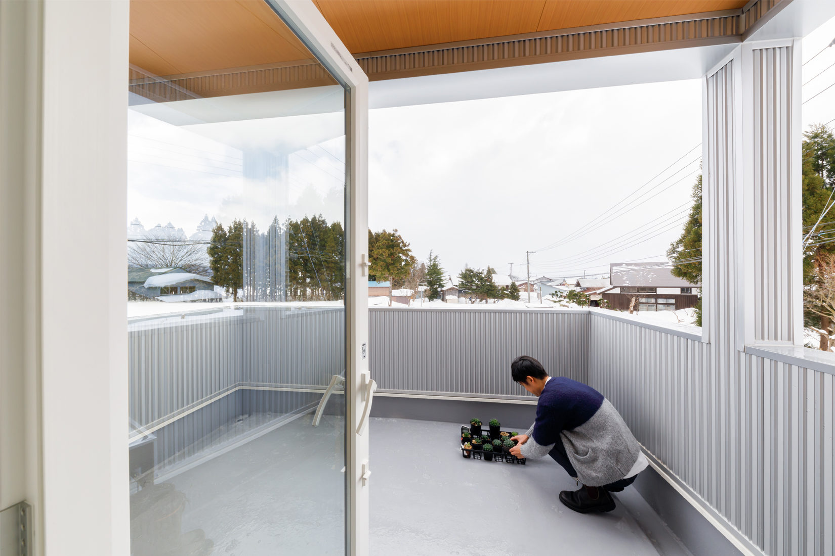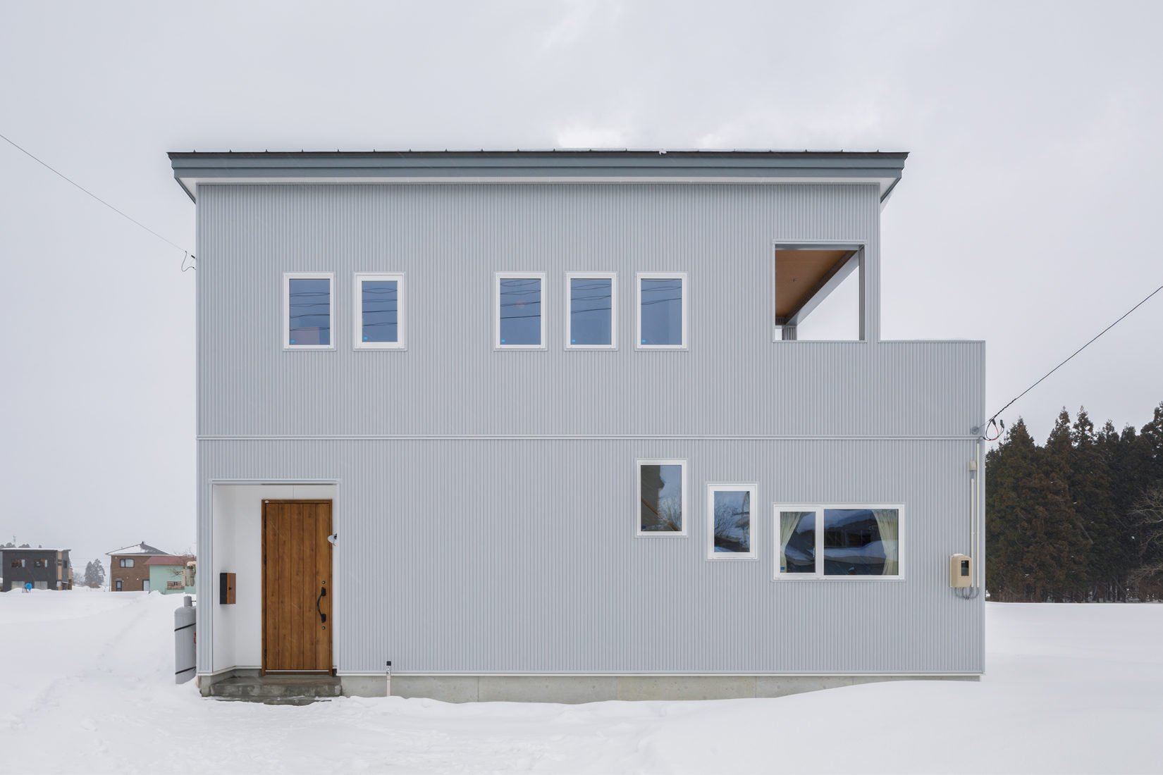 S邸の背面には、真っ白に雪化粧された広大な畑がつづく。この雪景色を切り取る窓は春夏にかけて緑があふれ、