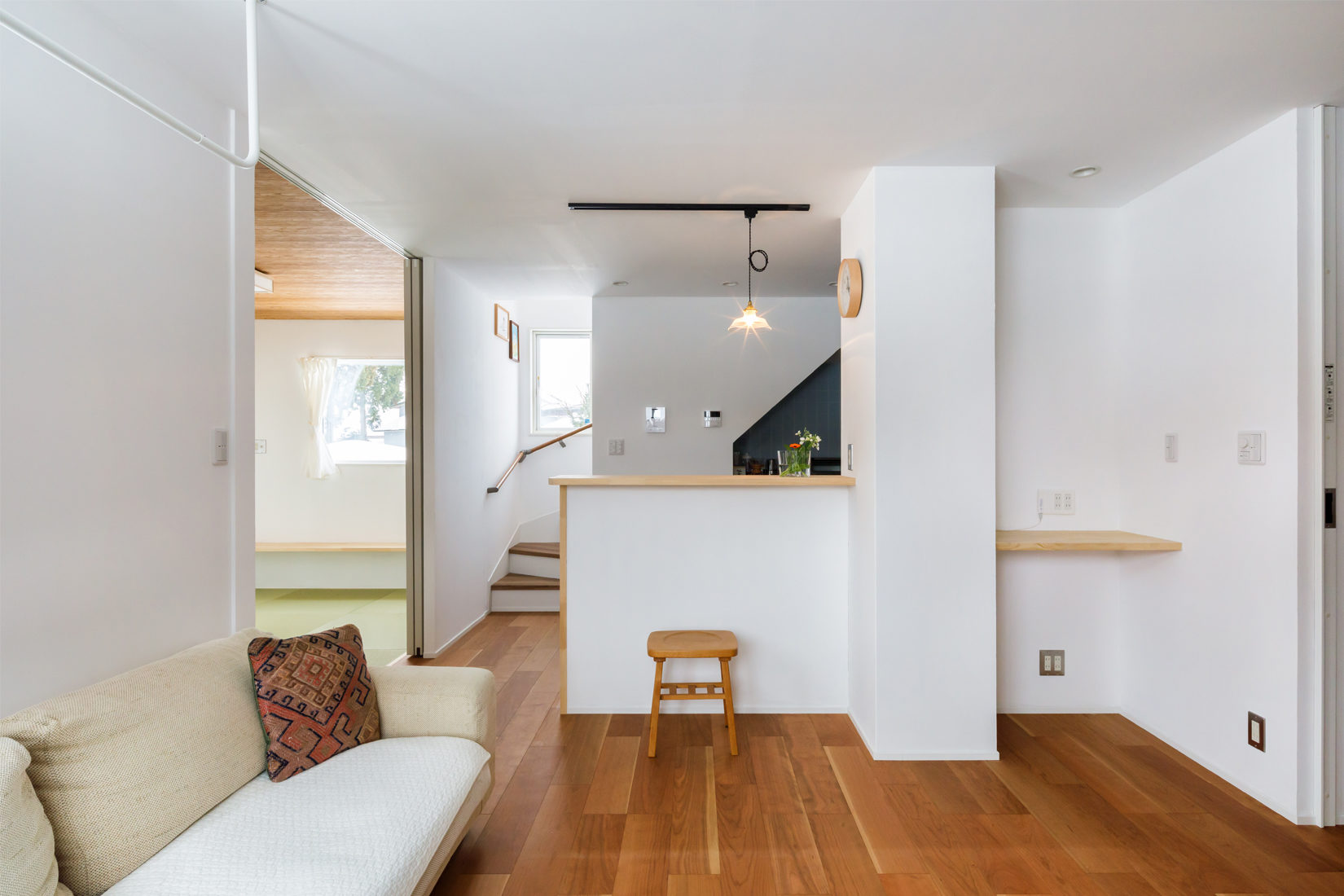 S邸の天井高は2350ミリと平均より50ミリほど低いが、圧迫感は少しも感じられない。
