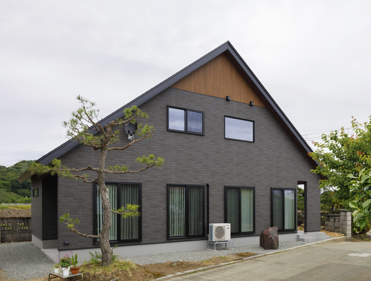 三角の大屋根が堂々たる風格で遠くからでも目を引くT邸。Tさん夫妻は展示場やモデルハウスを見て回り、