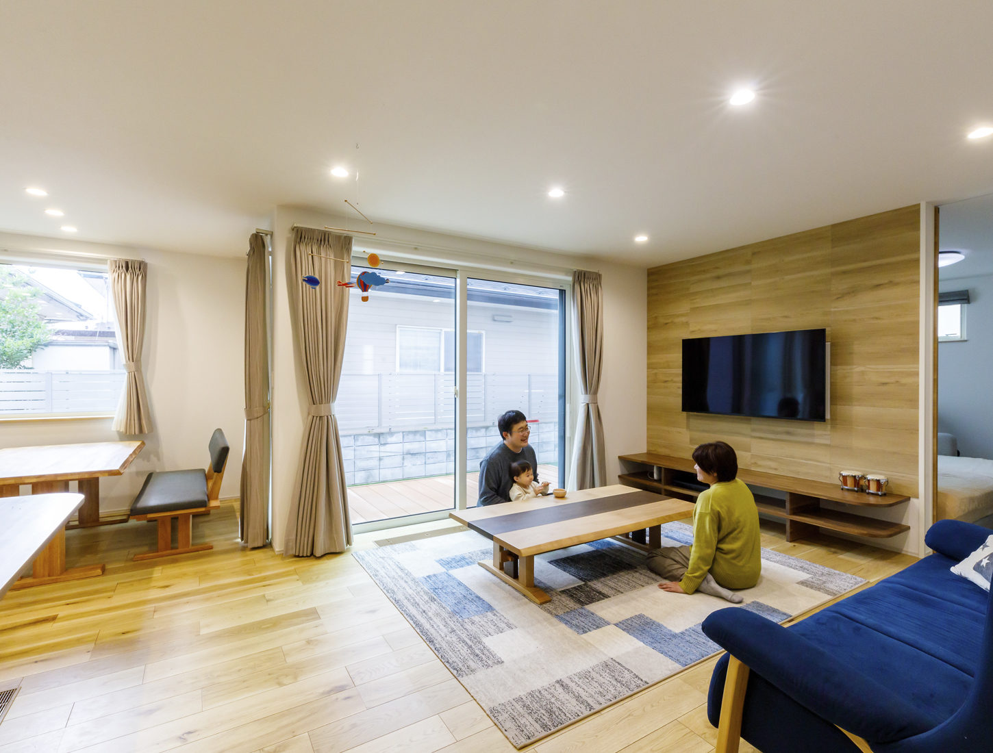 「コロナ禍になって、家で過ごす時間が増えました。運動不足の解消に散歩するようになって、そこで松美の家に出合ったんです」とSさん。当時住んでいたアパート近くに松美の家の分譲地があり、そのまち並みに惹かれてモデルハウス「エアシス」を見学。「エアシス」は住宅性能を高め、空調室に設置したエアコン1台で全館の温度管理ができ、部屋にエアコンや暖房機器を置く必要がなく、室内を常に一定温度に保つことができる松美の家のプラン。その快適性に感動して松美の家への依頼を決めたそうだ。