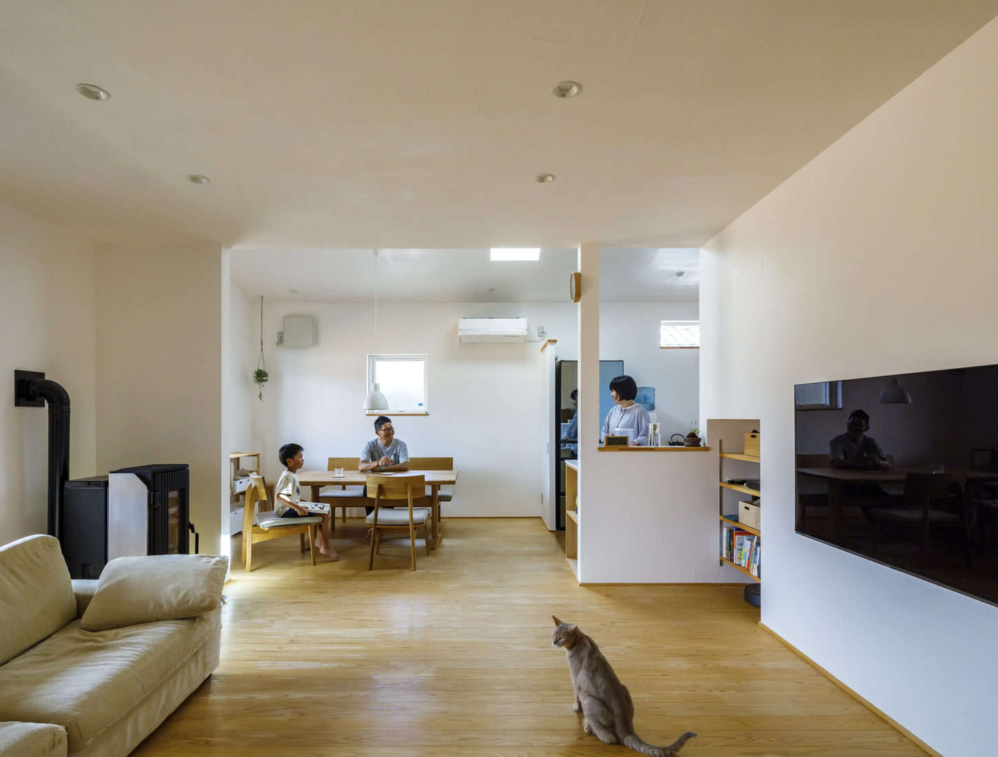 暖房設備 / エアコン(電気)、ペレットストーブ | 給湯設備 / 灯油 | バス / 既存 | トイレ / TOTO GG1 | キッチン / TOTO ザ・クラッソ | 調理設備 / IH | 窓仕様 / 樹脂サッシLow-Eペアガラス | 断熱材 / グラスウール、XPS | 換気システム / 第3種換気
