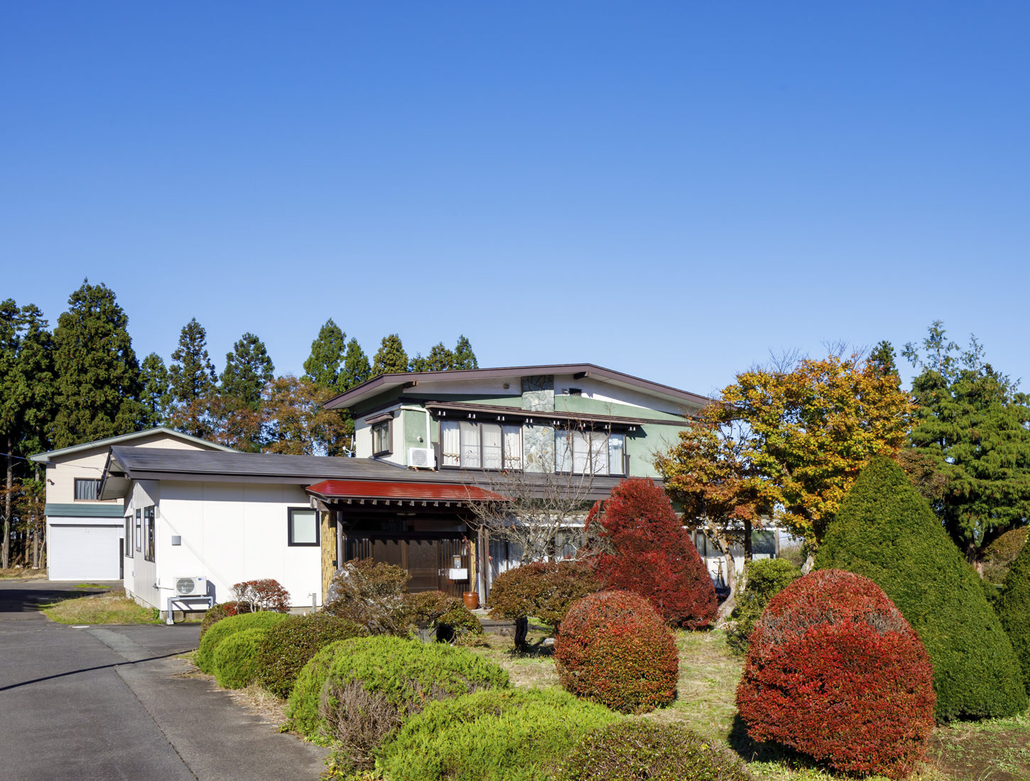 緑豊かで、美しい庭木に囲まれて立つS邸。先祖から受け継いだ敷地約7200坪という広大な土地を管理しながら、母屋を少しずつ改修してSさんは自分好みの空間を作ってきた。