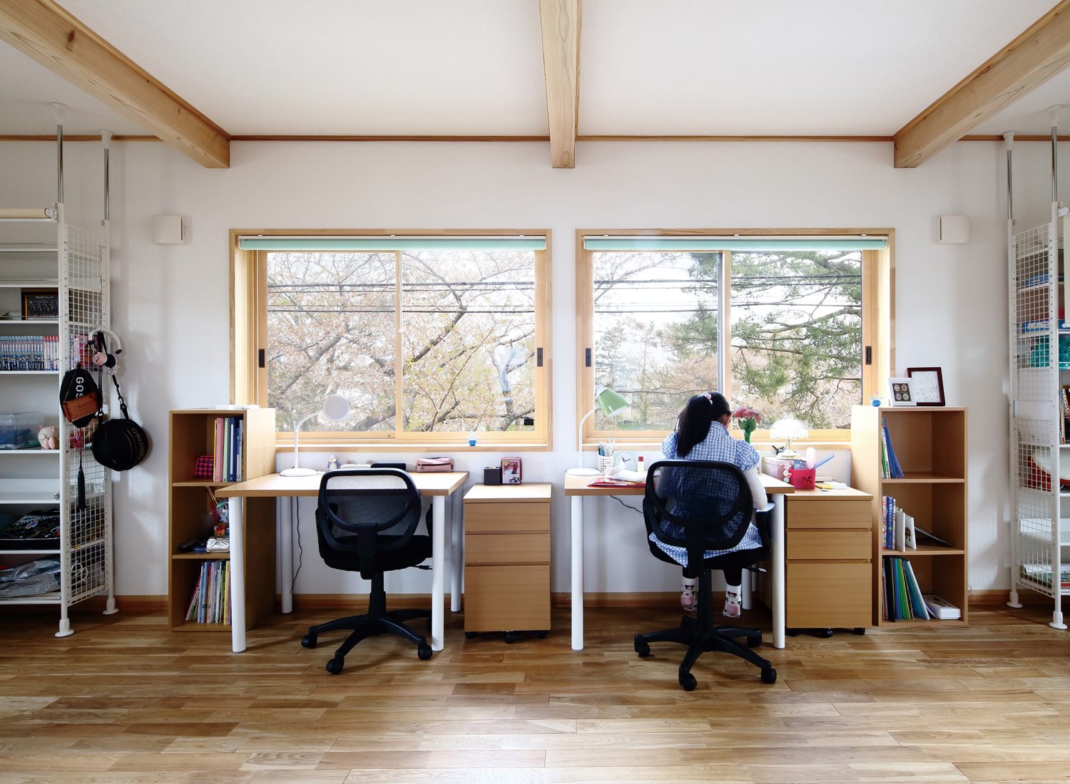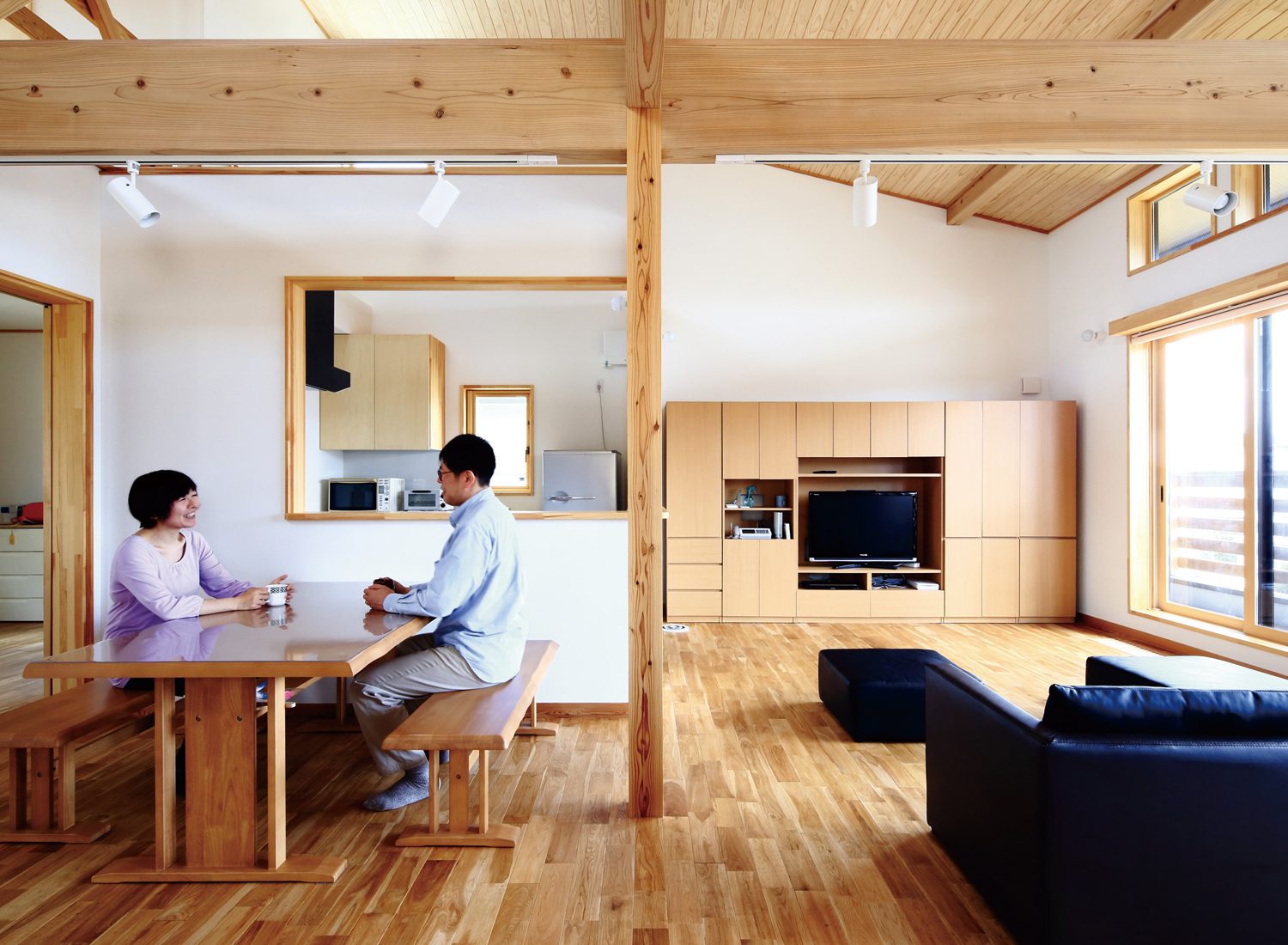 「冬も経験しましたが、本当にエアコン1台で快適なのには驚きました」と妻のTさん。もう一つのうれしい驚きが「次女のめぐみさんの将来の夢が建築家になったこと(Hさん)」だそう。「家づくりをつうじて姉妹が以前よりもっと仲良くなった。将来的にも個室はいらないかも」と新居での暮らしに満足げだ。