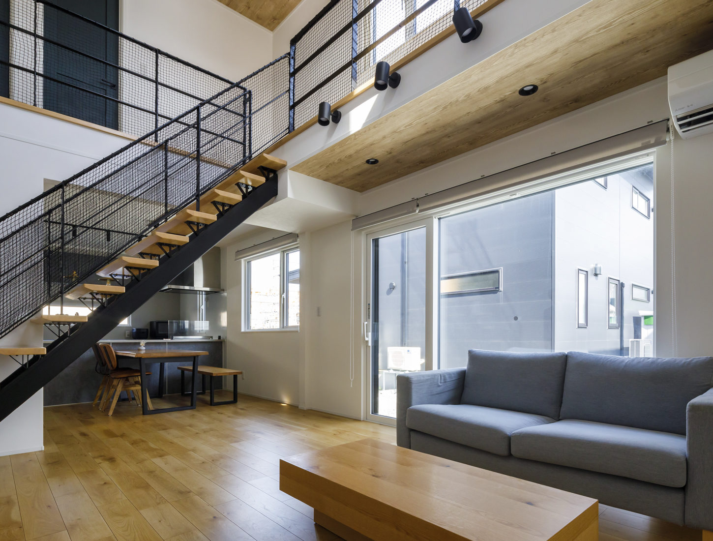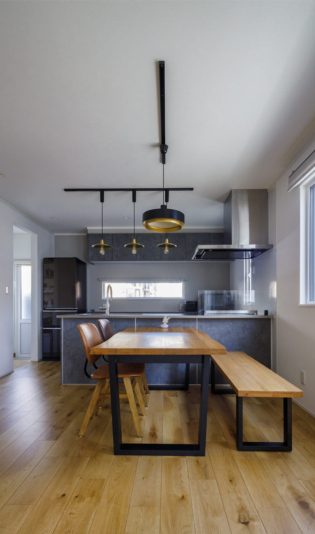 Uさんはビンテージ風の仕上げが好み、妻のSさんは北欧テイストが好みのため、「ここは私、ここは夫と相談しながらそれぞれの好みを少しずつ取り入れました」とSさん。「ビンテージにはなりきれていないですけど」と笑うSさんに、「これからビンテージになっていけばいい」と答えるUさん。開放的な大空間は明るく、子どもたちが走り回っている。新しい家での生活がスタートし、日々の生活を楽しんでいる様子が うかがえる。末永く、時とともに味わいを増していく住まいに違いない。