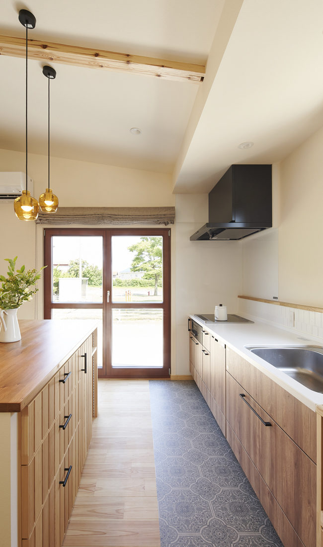 間取りや仕様を決める打ち合わせの時期にRさんの妊娠期が重なった。体調が思わしくない時期もあり自分の選択に不安があったというが、そんなときに設計・利部さんの細やかな視点に助けられたという。「利部さんは、食事を作る人の目線に立って提案してくれました。実際も、想像以上に使いやすくてうれしくなることが多かったです」とRさんは話す。キッチンカウンターの作りこみやパントリーも気に入っているという。