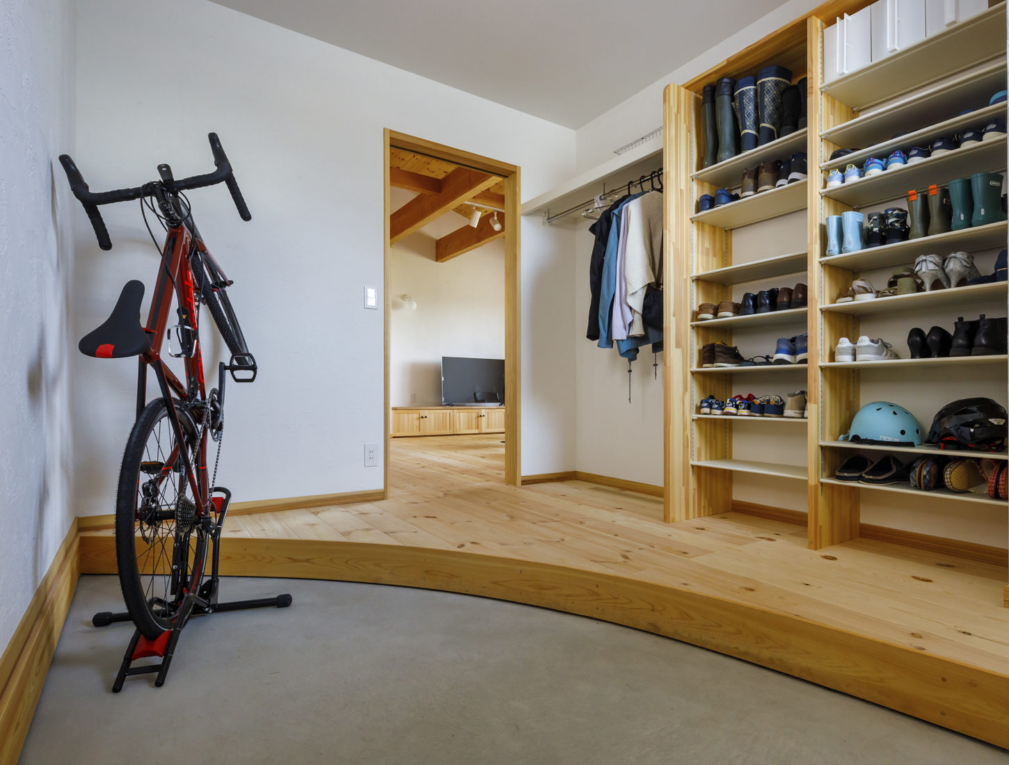 Hさんが考え抜いたのが効率的な家事動線だ。U邸はまず、キッチンの周囲をぐるりと回ることができる。さらに、キッチンからランドリーコーナー、ファミリークローゼットとこちらも行き止まりがない。「二重の回遊動線」が最大の特徴だ。洗濯機を回しながらキッチンで作業、といったマルチタスクが最短の距離でできる。Hさんは「すべてに手が届きやすく、スムーズに動けることを重視しました」と話す。また、「子ども室」「寝室」など部屋ごとの用途を決めず、子どもの成長や家族の人数に応じて柔軟に使い方を変えられるよう幅を持たせている。