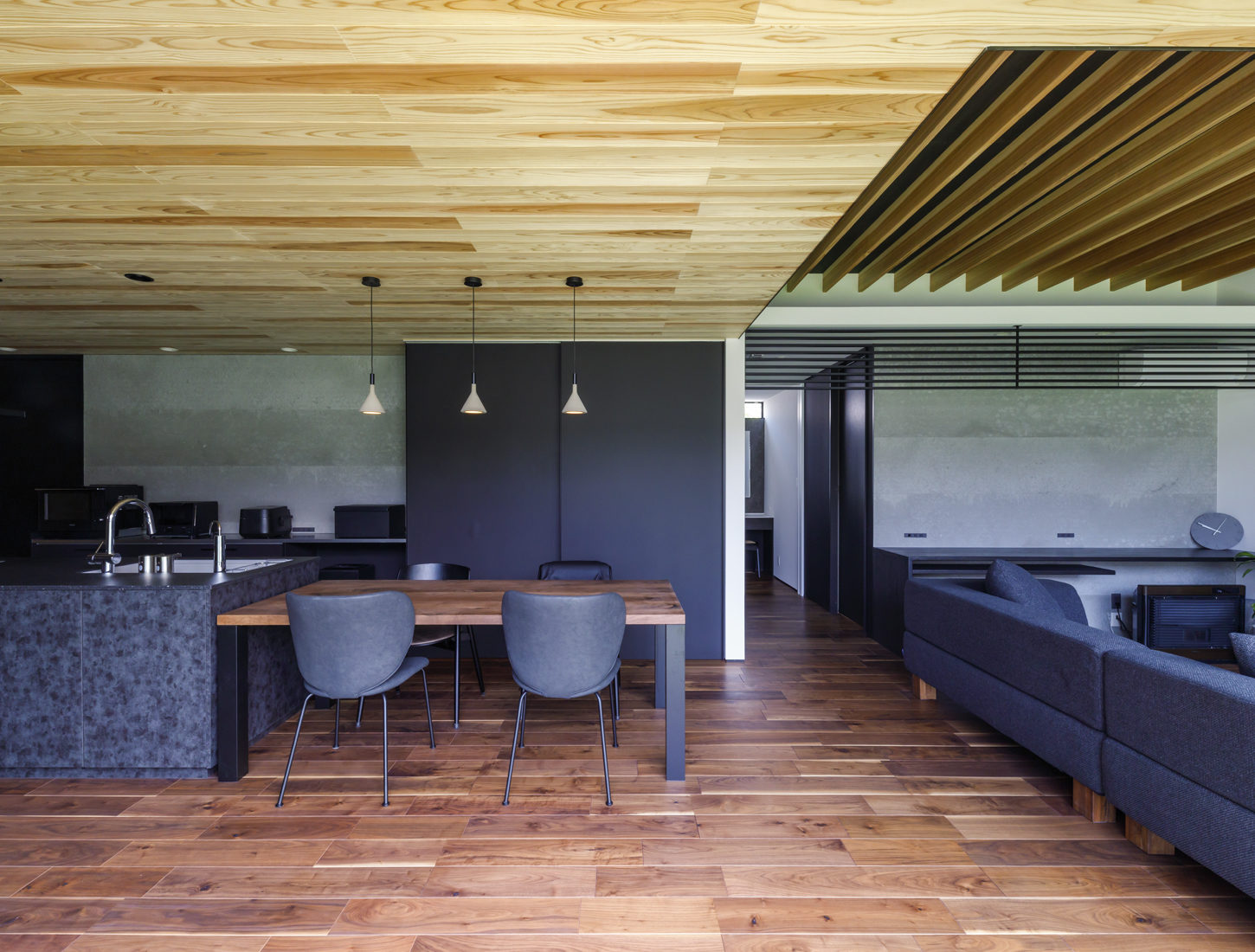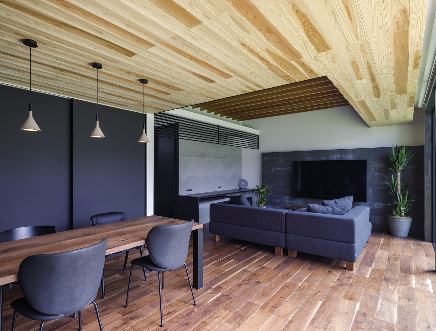 住宅展示場の見学をしながら、ウェブサイトやSNSで情報収集をしていたHさん夫妻。そこで見つけたのが児玉建設のインスタグラムだった。さっそく展示場を見学。「私たちから見て、あまりのセンスの良さに一つの大きな美術作品を見ているような感覚になりました」と妻のMさん。Hさんも「素材の良さも含めて一目惚れでした」と即決。予約順で、着工まで2年かかるということだったが「絶対に児玉建設で建てたい」と待つことに決めたそうだ。
