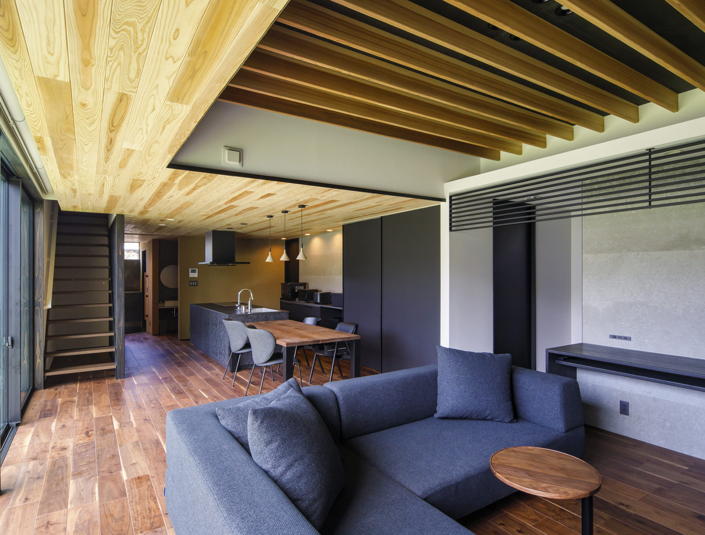 夫妻が一目惚れした展示場は設計を担当する児玉拓也さんの自宅兼展示場。「実際に見てもらい、私たちがどんな家を建てているのか、デザインや素材だけではなく、間取りの考え方や住宅性能を感じてもらい、価値観を共有できるので良い家が建つのだと思います」と児玉さん。Hさん夫妻も、展示場を参考にしながら、自分たちの希望を伝えていったという。