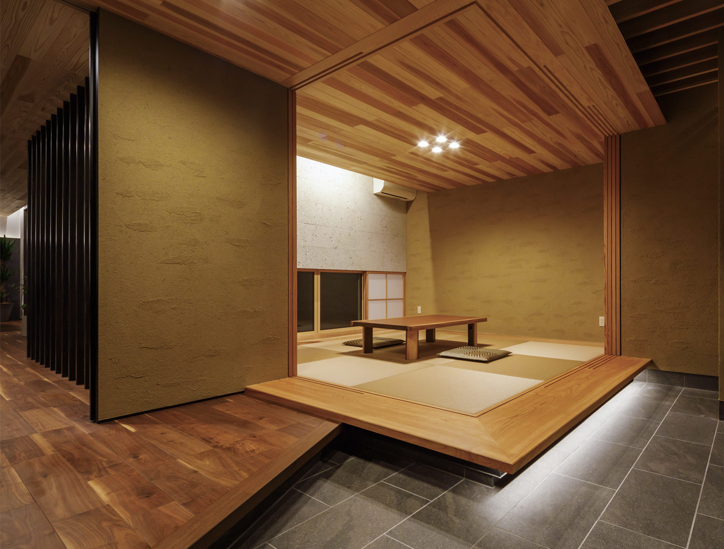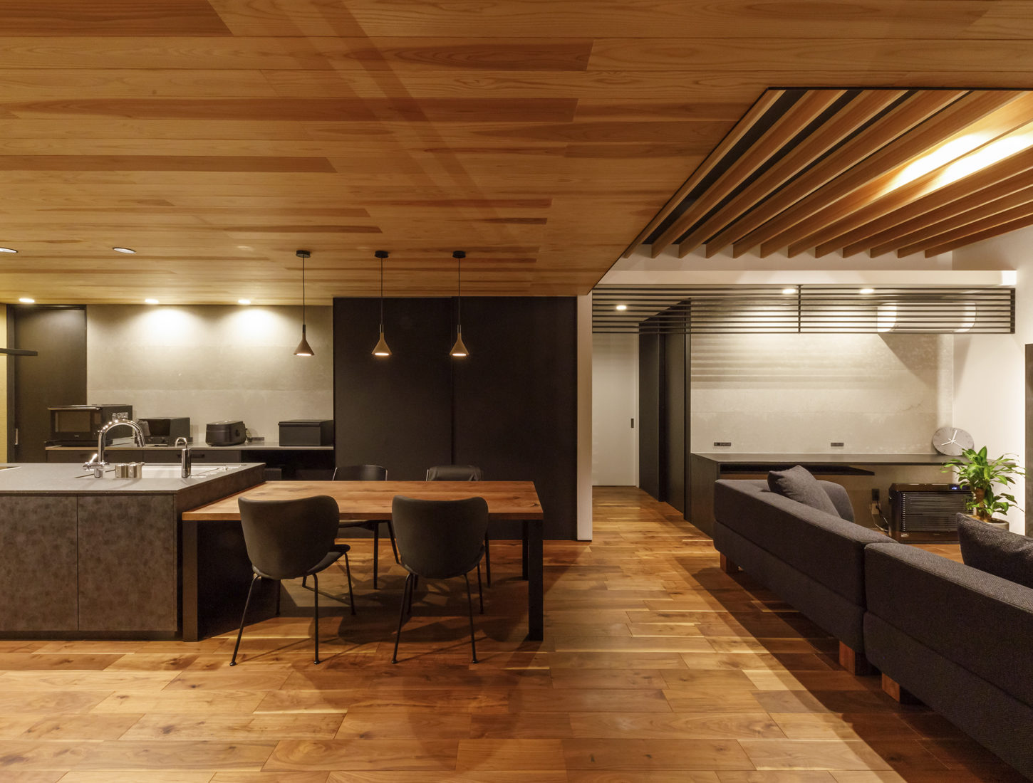 この家で暮らしはじめ、Hさんは念願だった友人を招いての和室飲みを楽しむなど、満喫している様子。どこにいても見渡せる室内空間はもちろん、窓からの景色や日の入り方などが計算されていて心地良さに驚くという。「お任せするところはお任せしたほうが絶対に良い家になると思いました」とMさん。そして、「以前は温泉旅館によく泊まりに行っていましたが、この家ができてからは『家がいちばんいいね』となって外泊が減りました」と夫妻で声を揃えて笑った。