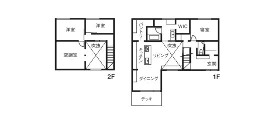 ガレージに加えて吹き抜けのLDK、寝室を1階に配置して平屋のように暮らせる間取りなどの要望を出して設計を依頼。当初リビング階段を提案されたが、2階の客間に配慮して階段をLDKの外にしたほかには大きな間取りの変更はなかったという。