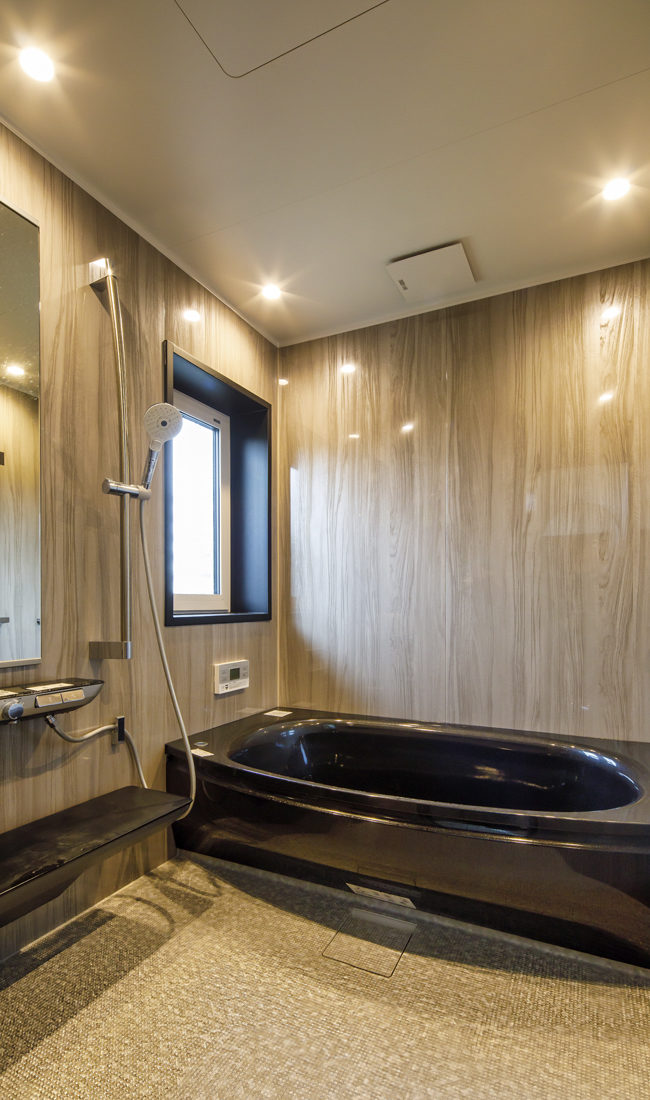 暖房設備 / ヒートポンプエアコン(電気)| 給湯設備 / エコキュート(電気)| バス / TOTO サザナ | トイレ / TOTO GG1 | キッチン / LIXIL リシェル | 調理設備 / IH | 窓仕様 / 樹脂サッシLow-Eトリプルガラス | 断熱材 / グラスウール、フェノールフォーム | 換気システム / 第3種換気 | 太陽光発電設備 / 12.0k W | 長期優良住宅 | ZEH | UA値╱0.23W/㎡K | 断熱等級7