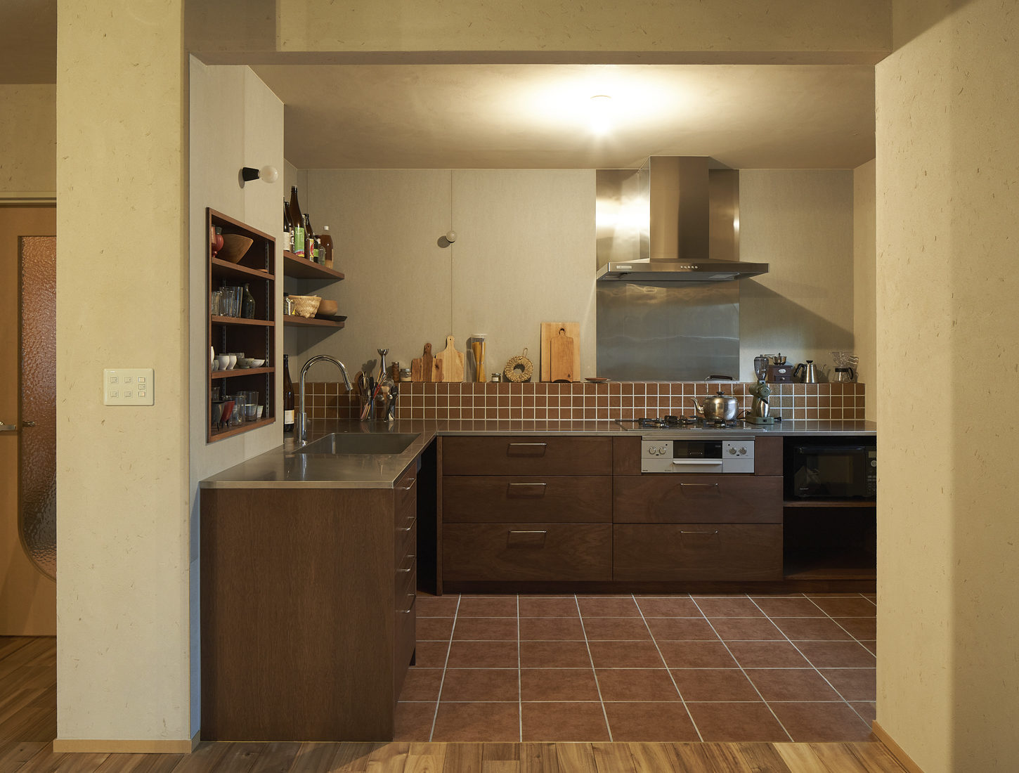 | 内壁材 | 塗り壁(珪藻土藁入り)、 タイル、フレキシブルボード |