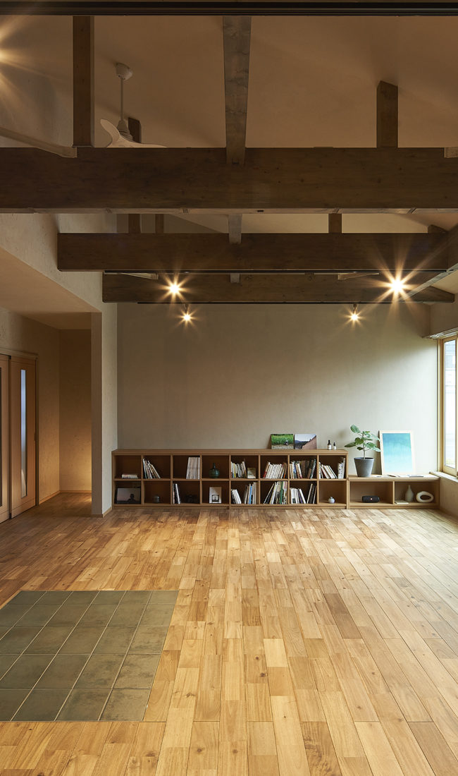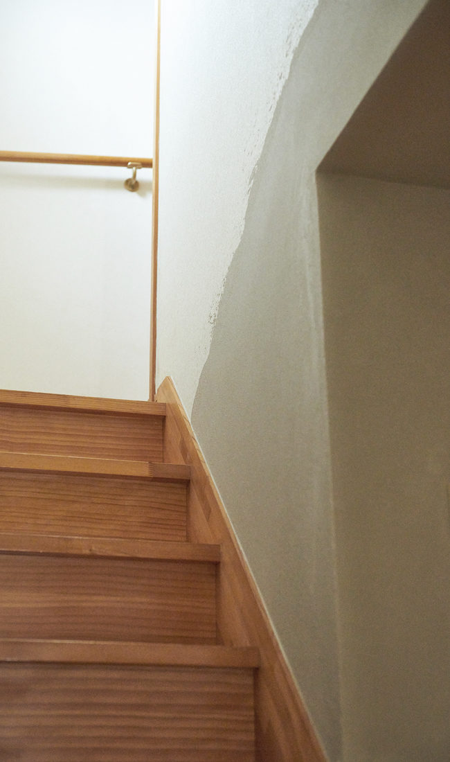 状態のいい物件だったことに加え、予算管理の面でも、家づくりはDIT( Do It Together の略で、知人友人らと協力しあってともにつくること)を大いに取り入れて行われた。「なによりも『家をつくる』というプロセスを自分たちの手で体験することにこだわりたかったんです。普通は素人が家づくりに参加するなんて考えられないことなんでしょうけれど。」とHさん夫妻。解体作業からスタートし、梁を塗装したり、珪藻土を塗ったりして、住まいをつくる工程一つひとつに参加した。地元の仲間や親族も加わり、作業そのものがまるで地域の交流の場のようだったとHさんは微笑みながら思い出を語る。「あくび建築事務所の筒井さんはじめ、棟梁の櫻田さんなどさまざまなプロが私たちのわがままを叶えてくださって、家づくりのプロセスに参加できたのがうれしかったです」とAさんもしみじみと振り返った。