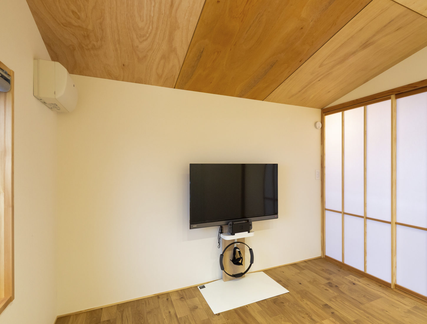 「とにかく居心地のいい家。落ち着く居場所があちこちにあって、一日じゅう家にいても飽きることがありません」とKさん夫妻は口々に言う。たしかに、床面の一部を下げて天井高を取ったピットリビングは落ち着きのある空間で、あえて障子にした南側の開口部からの柔らかな光で満ちている。和のテイストをアクセントにした、木の温かみが伝わってくる住まい。考え抜かれた部屋の配置や動線があり、デザインと