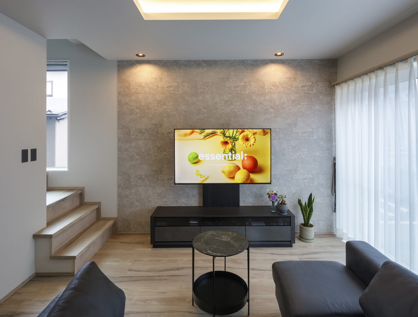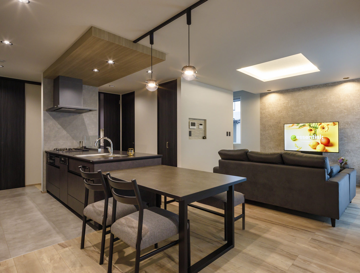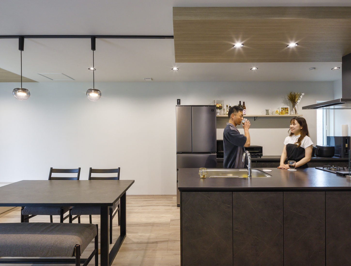 家づくりでは、「住宅関連のインスタグラムも参考にした」とMさん。気に入った写真を関さんと共有しながら設計に取り入れていったという。なかでもお気に入りはキッチンで、クリナップの最上位グレードのCENTRO(セントロ)を採用。そのダークトーンに合わせて内装や家具を選んだそうだ。