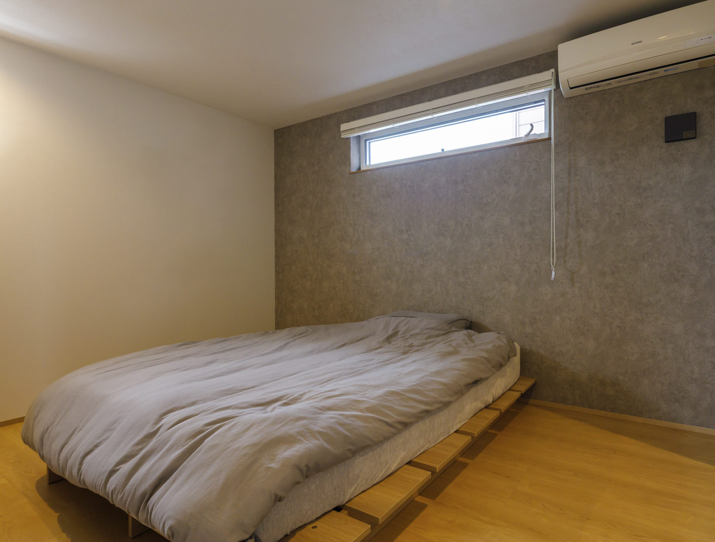2階は寝室と個室のみで、1階で生活が完結する。キッチン、LDK、水回りをつなぐ回遊動線のおかげで「移動がスムーズで、本当に生活しやすいです」と妻のAさん。住宅の完成と時を同じくして子どもを授かったお二人。「キッチンからリビングに目が届き、子どもの様子を見守りながら過ごすことができそう」とAさんが話す通り、この家で子育てができることを心待ちにしている。